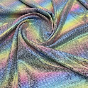 You are viewing Best Seller Vibrant Rainbow Hologram Broken Glass Metallic Foil Nylon Spandex Fabric 4 Way Stretch By The Yard for swimwear dancewear sportwear dress