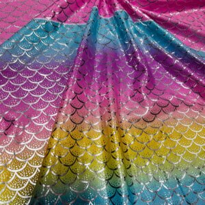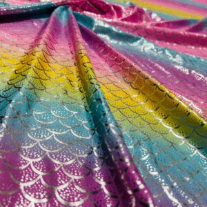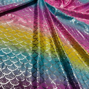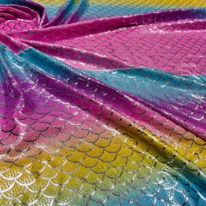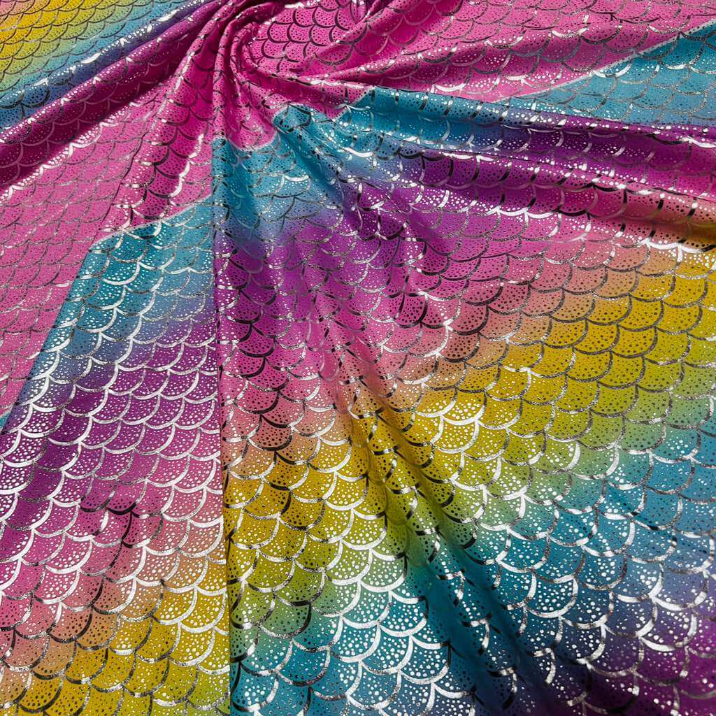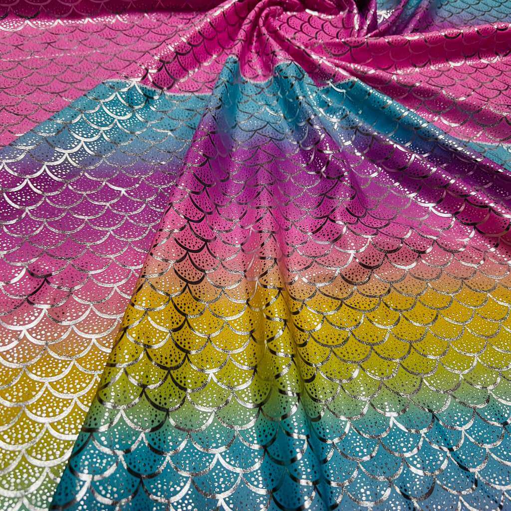 Vibrant Rainbow Mermaid Scales print Nylon Spandex Fabric 4 Way Stretch By Yard for swimwear dancewear gymwear sportwear