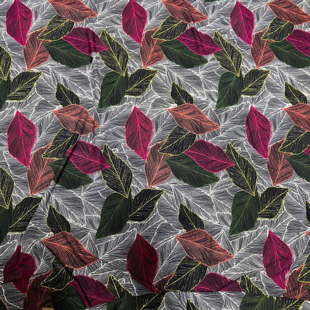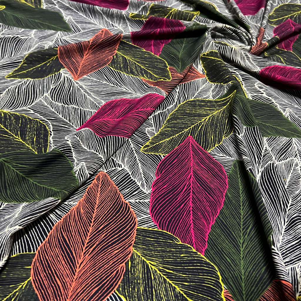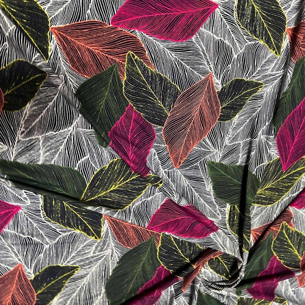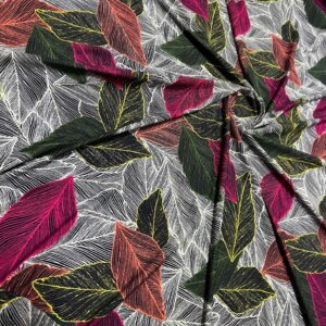 2 Yard 18″ Long / Vintage Design Leaves print Nylon Lycra Spandex Fabric 4 Way Strech by Yard for swimwear dancewear dress gymwear