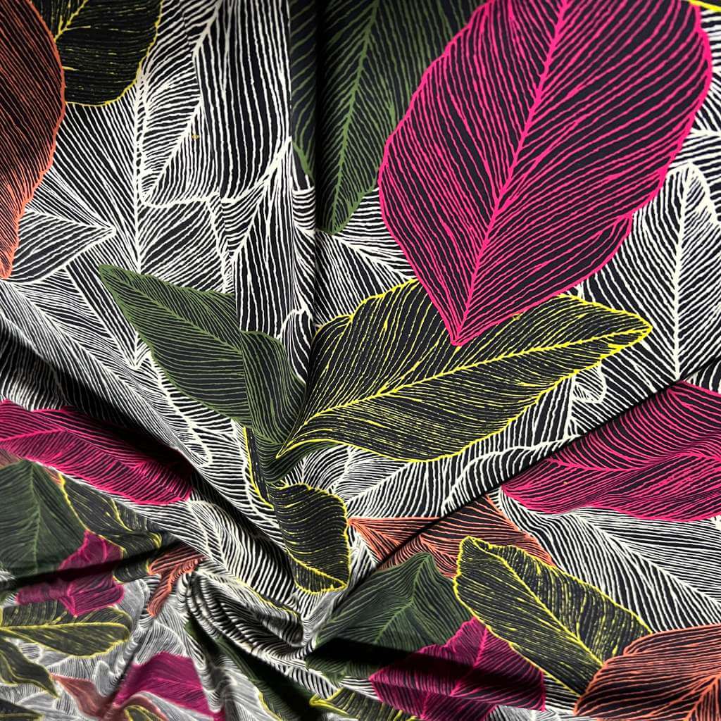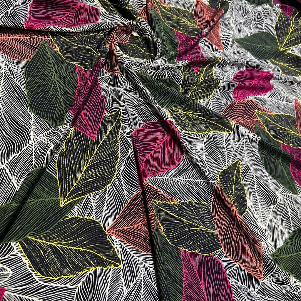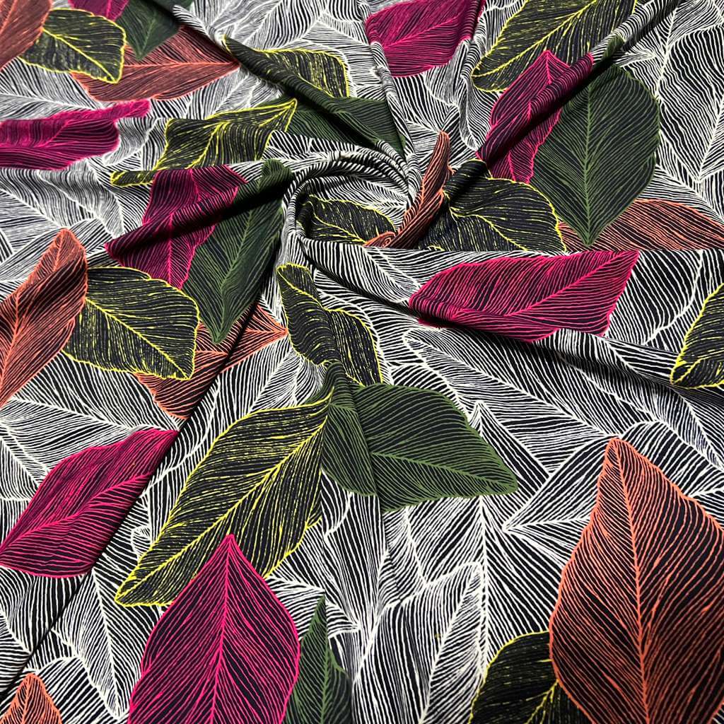 2 Yard 18″ Long / Vintage Design Leaves print Nylon Lycra Spandex Fabric 4 Way Strech by Yard for swimwear dancewear dress gymwear
