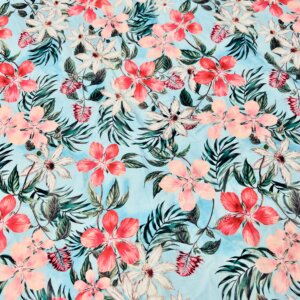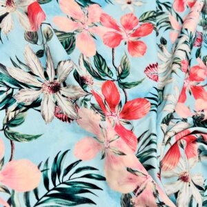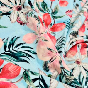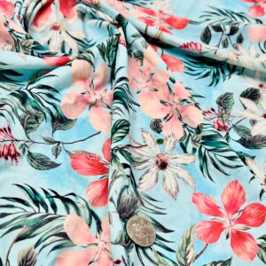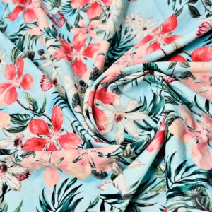 18″ Long / Vintage Flowers Sky Blue Background Print Nylon Lycra Spandex Fabric 4 Way Stretch By Yard for swimwear dancewear gymwear sportwear dress (239-7)