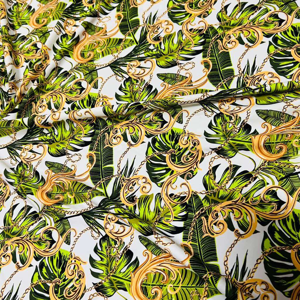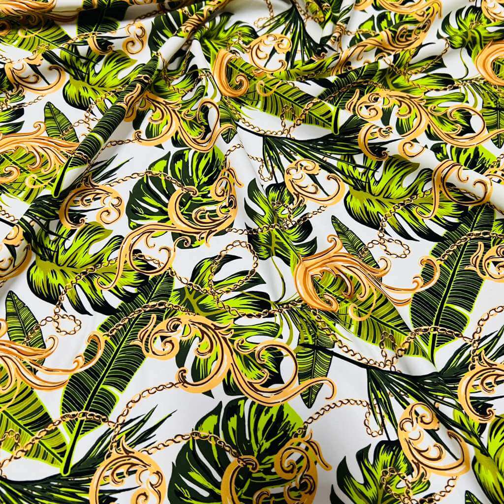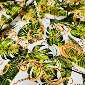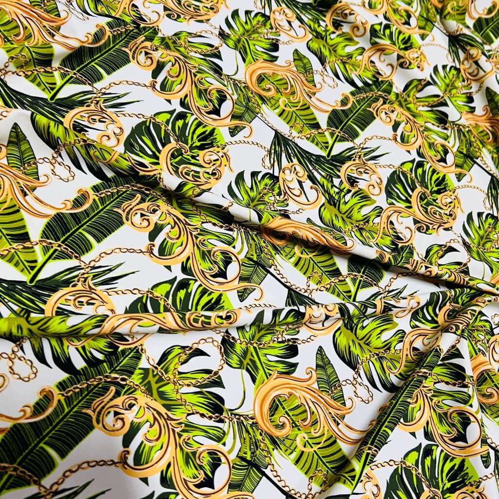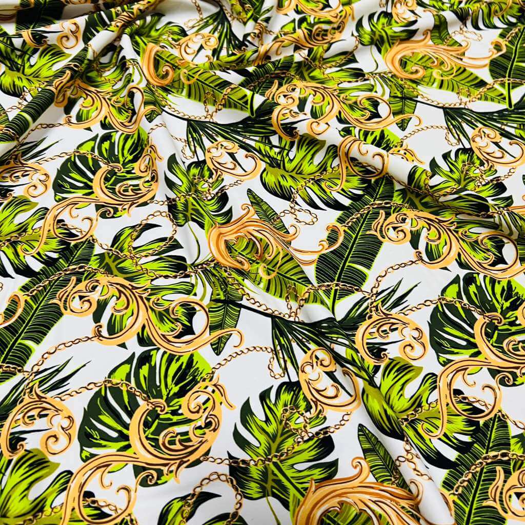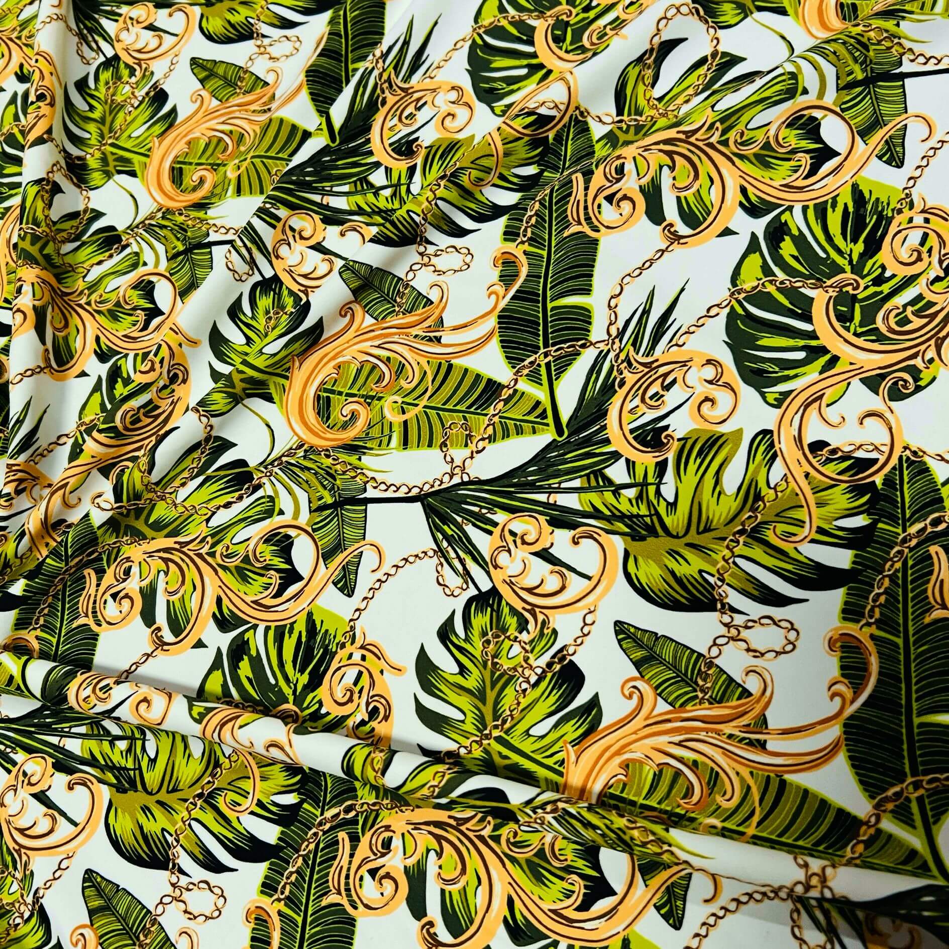 Jungle Green Leaves Print Nylon Lycra Spandex Fabric 4 Way Strech by Yard for swimwear dancewear dress gymwear (159) (40)