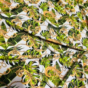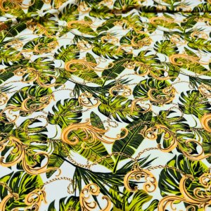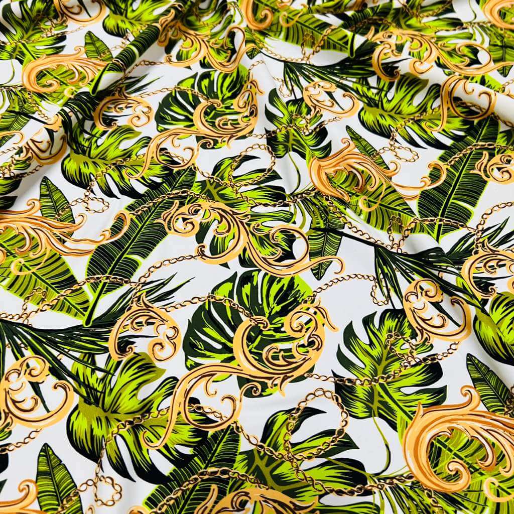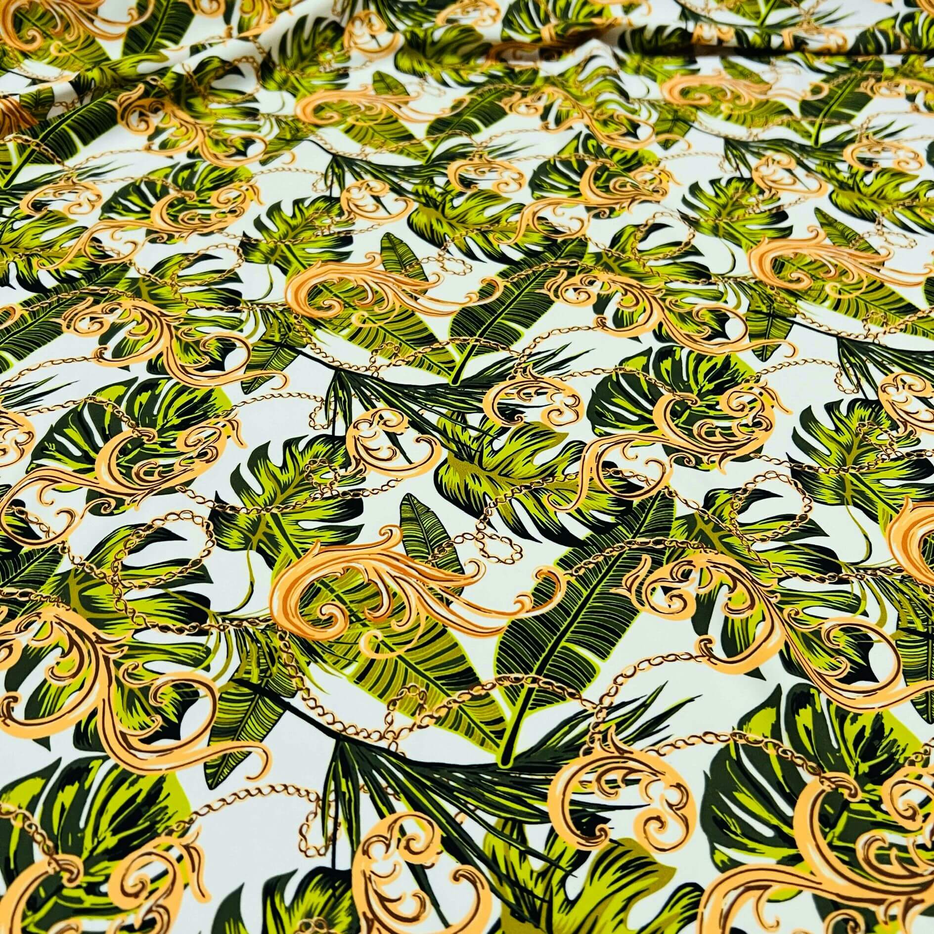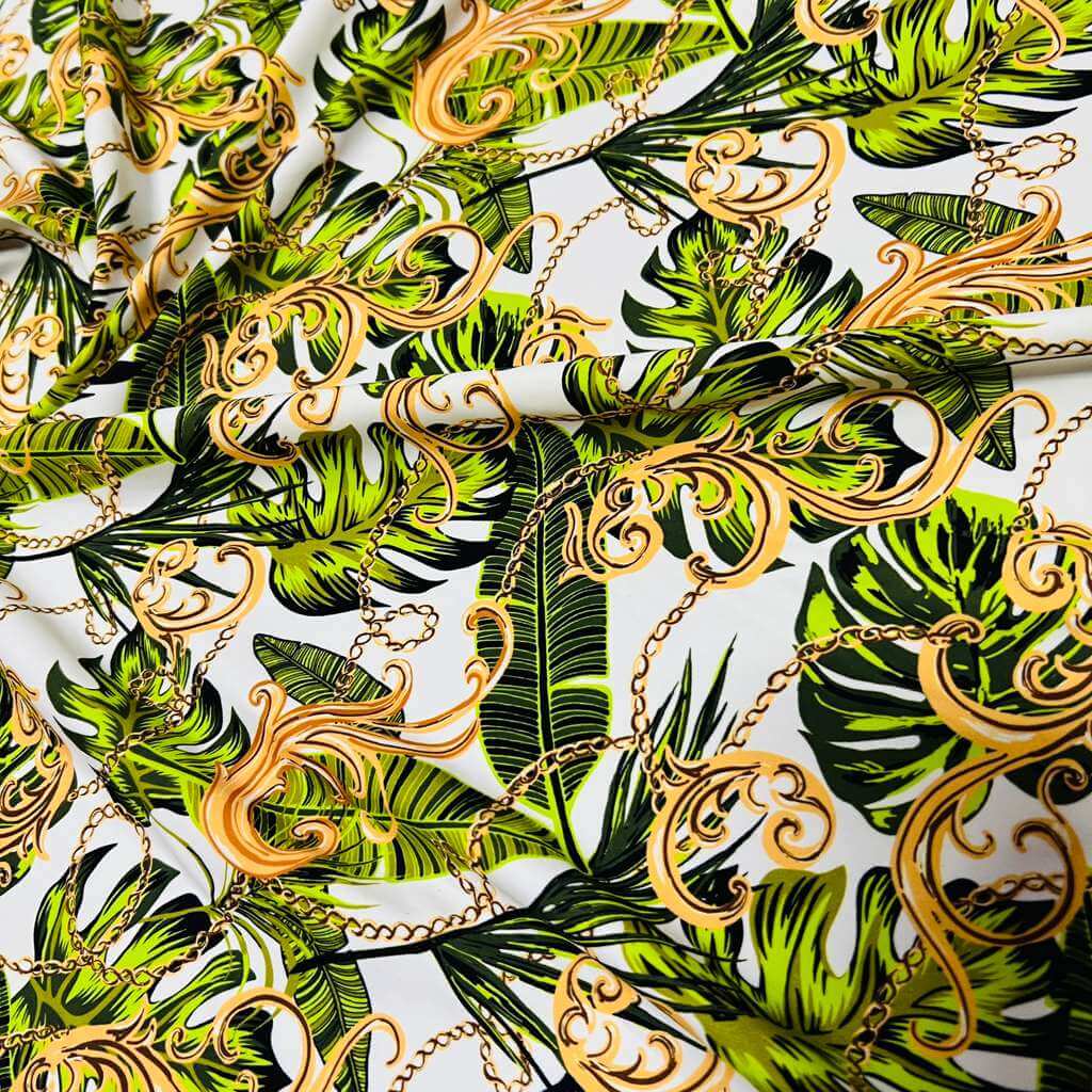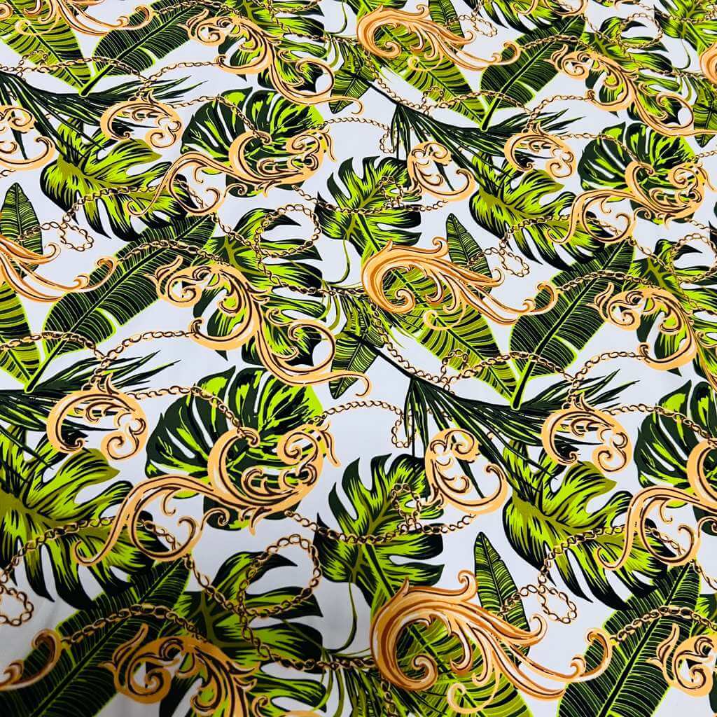 Jungle Green Leaves Print Nylon Lycra Spandex Fabric 4 Way Strech by Yard for swimwear dancewear dress gymwear (159) (40)