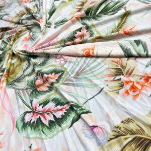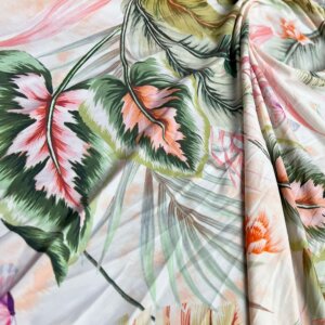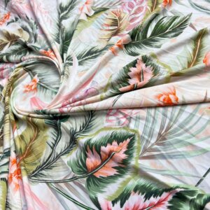 Vintage Leaves Print Nylon Lycra Spandex Fabric 4 Way Stretch By Yard for swimwear dancewear gymwear sportwear dress (243-4)