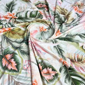 Vintage Leaves Print Nylon Lycra Spandex Fabric 4 Way Stretch By Yard for swimwear dancewear gymwear sportwear dress (243-4)