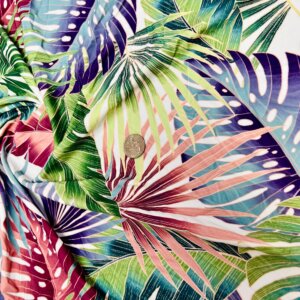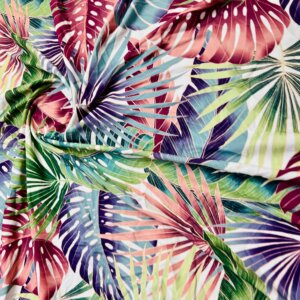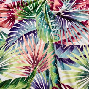Vintage Leaves White Background Print Nylon Lycra Spandex Fabric 4 Way Stretch By Yard for swimwear dancewear gymwear sportwear dress