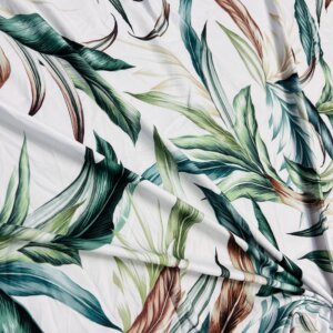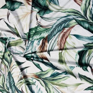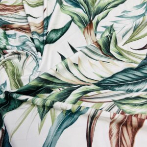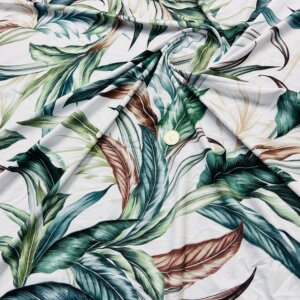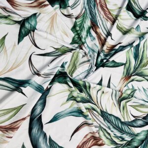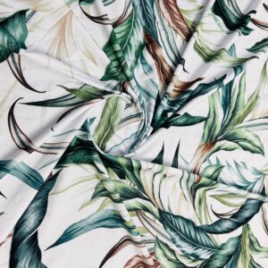 Vintage Leaves White background Print Nylon Lycra Spandex Fabric 4 Way Stretch By Yard for swimwear dancewear gymwear sportwear dress (279-11)