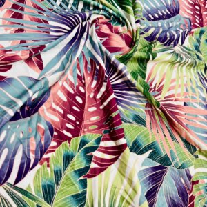 Vintage Leaves White Background Print Nylon Lycra Spandex Fabric 4 Way Stretch By Yard for swimwear dancewear gymwear sportwear dress