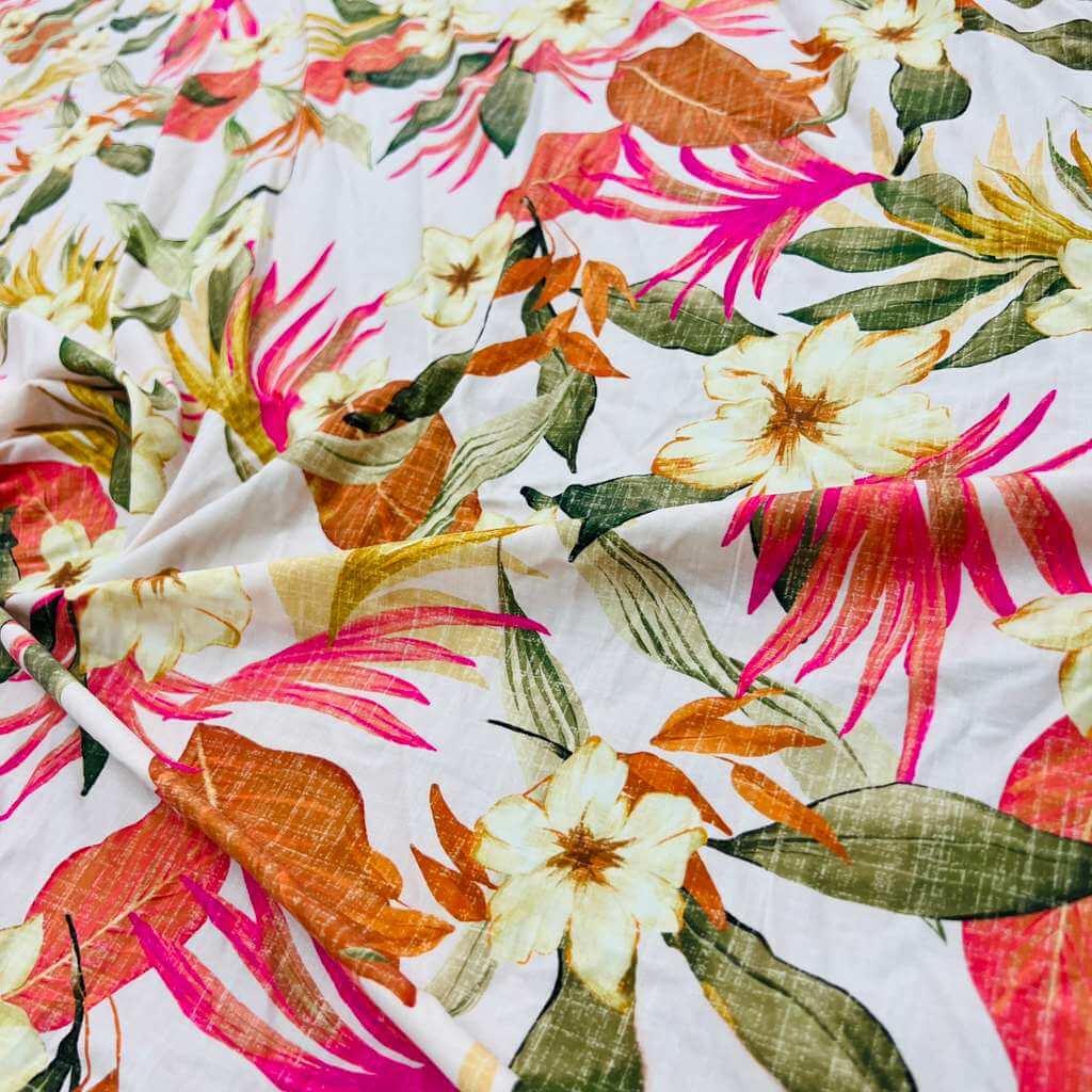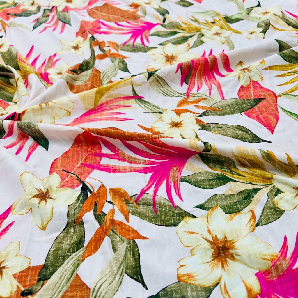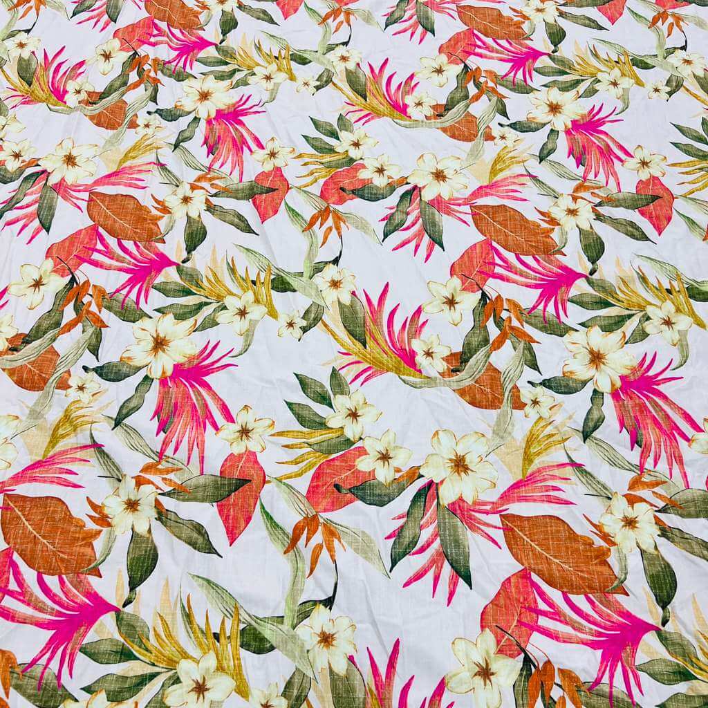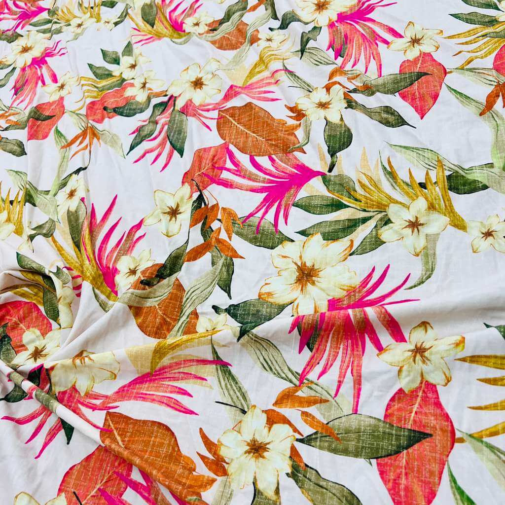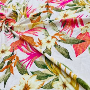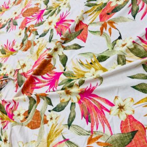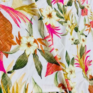 Vintage White Flowers Print Nylon Lycra Spandex Fabric 4 Way Strech by Yard for swimwear dancewear dress gymwear (204-7) (30)