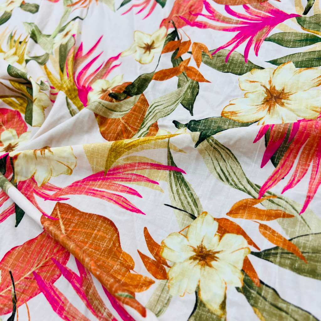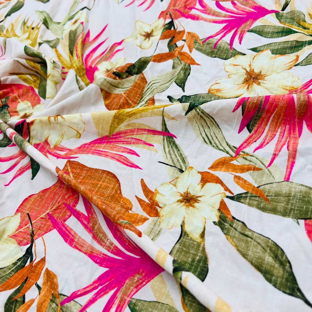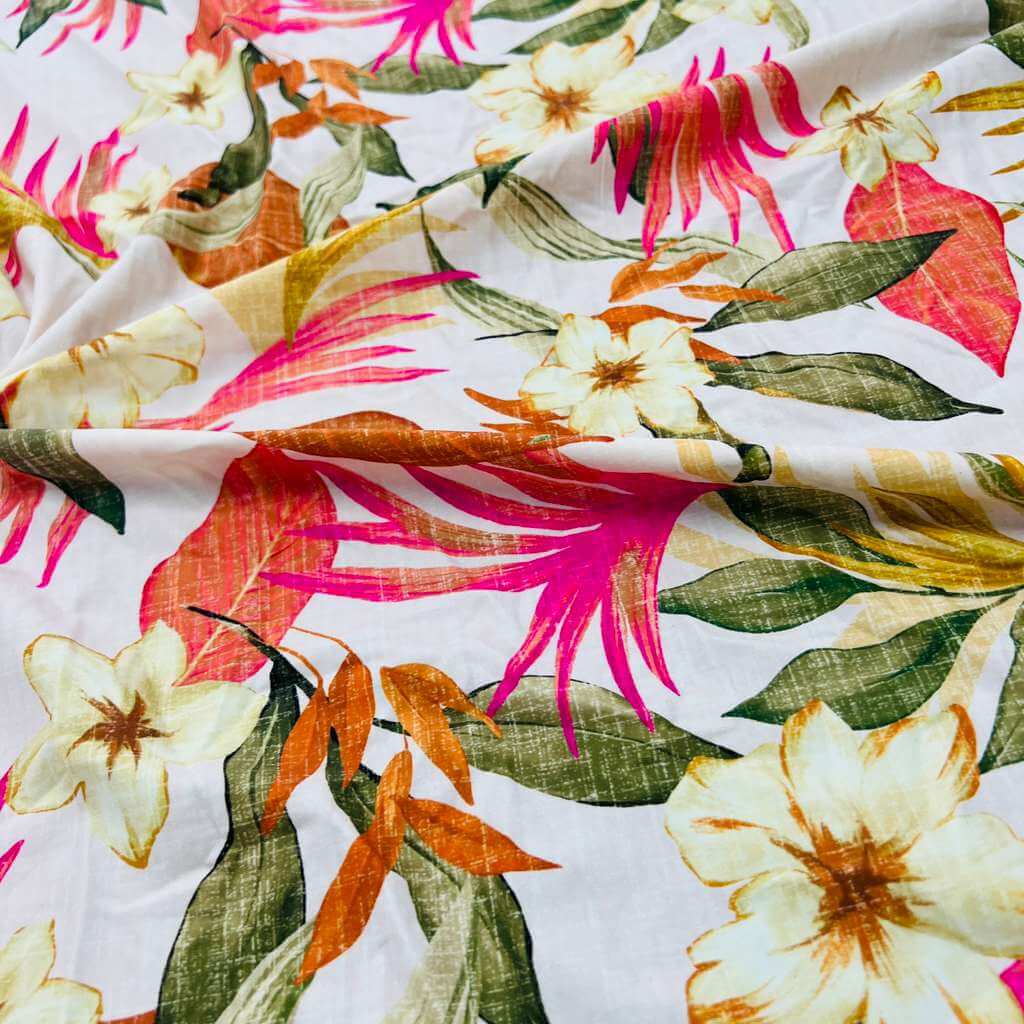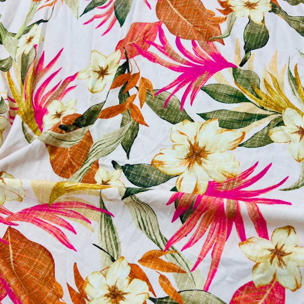 Vintage White Flowers Print Nylon Lycra Spandex Fabric 4 Way Strech by Yard for swimwear dancewear dress gymwear (204-7) (30)