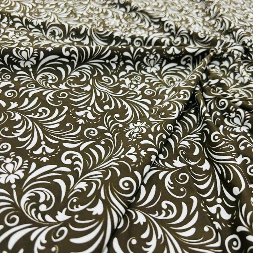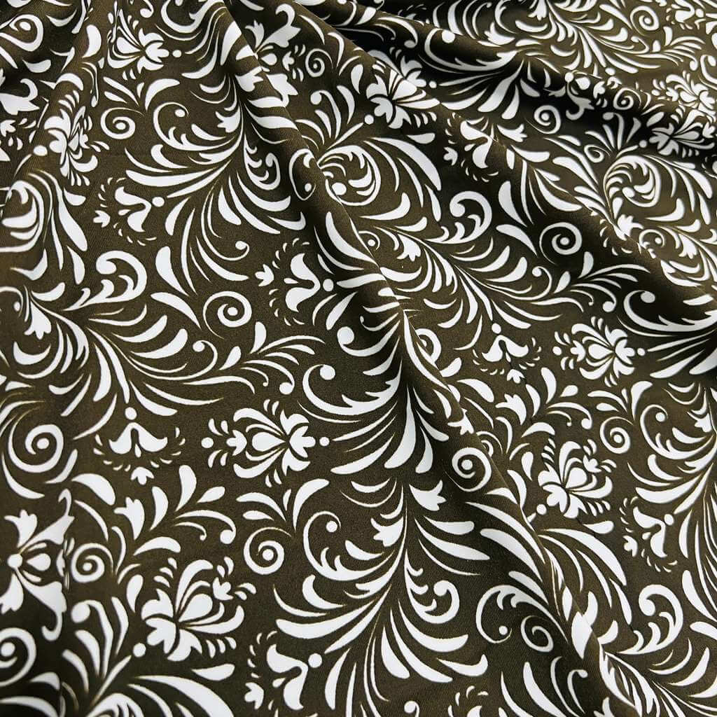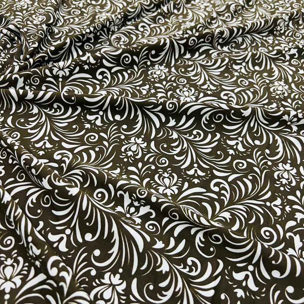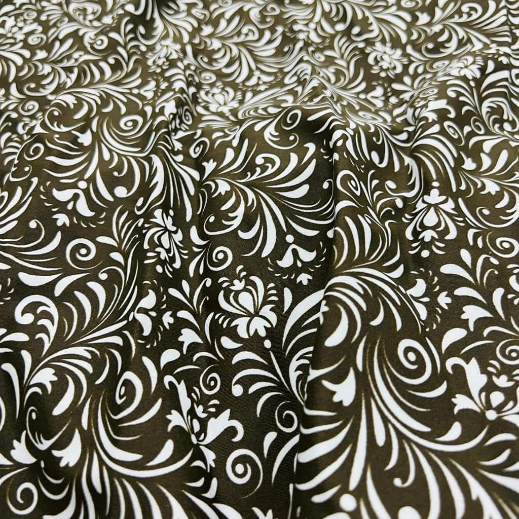 Vintage White Flowers print Nylon Lycra Spandex Fabric 4 Way Strech by Yard for swimwear dancewear dress gymwear (159-1)(23)