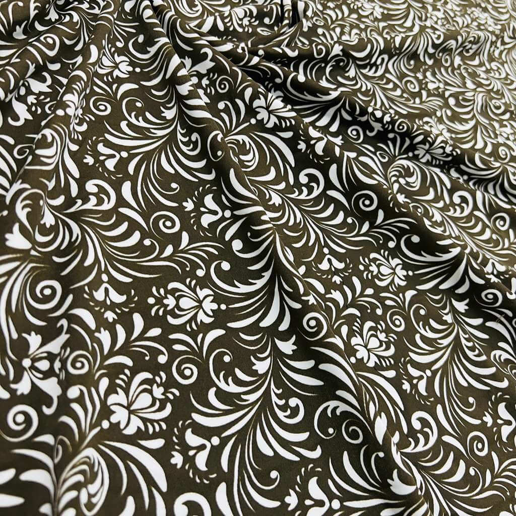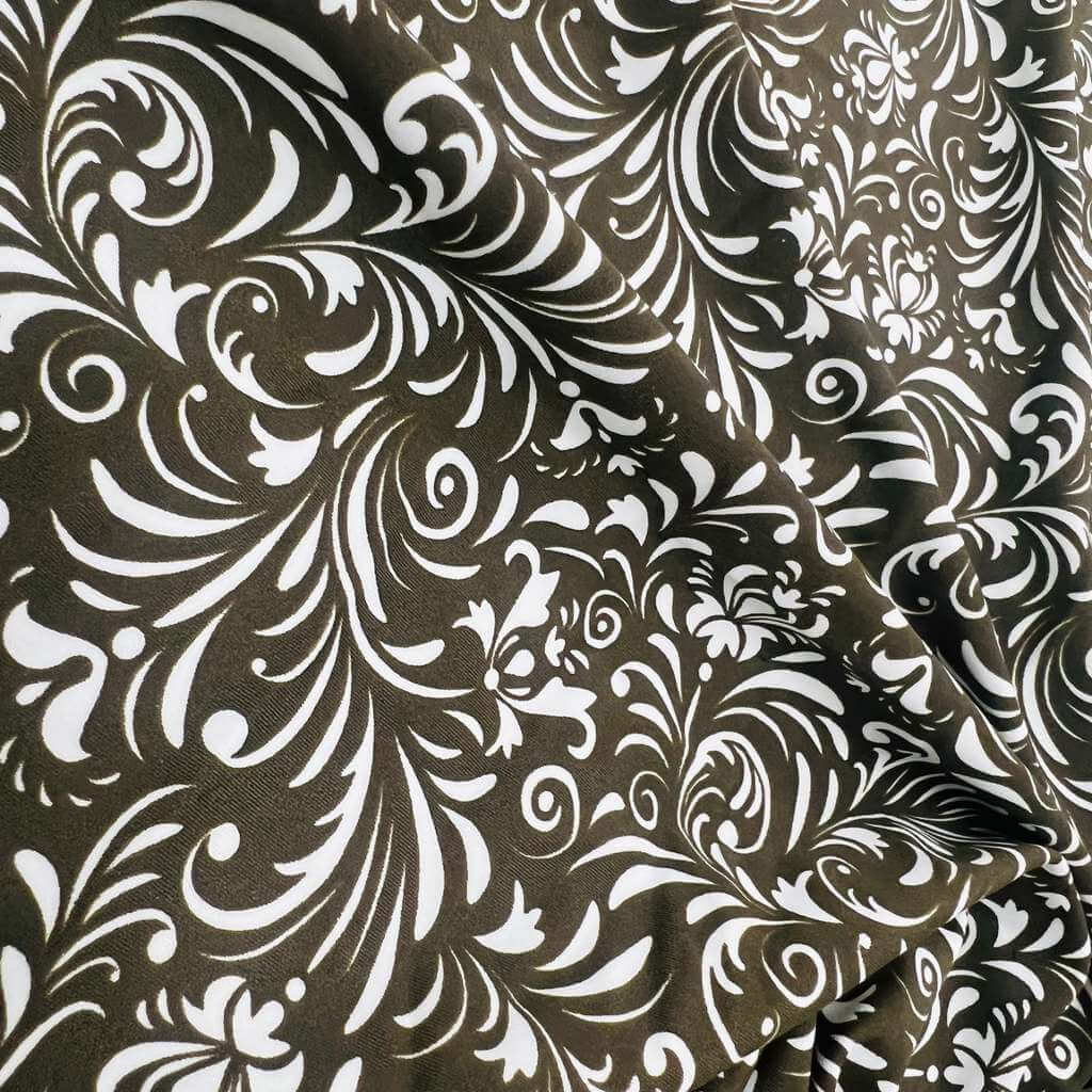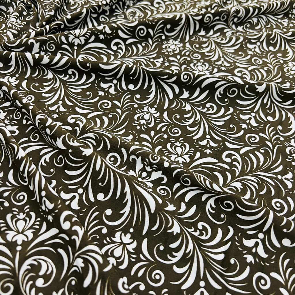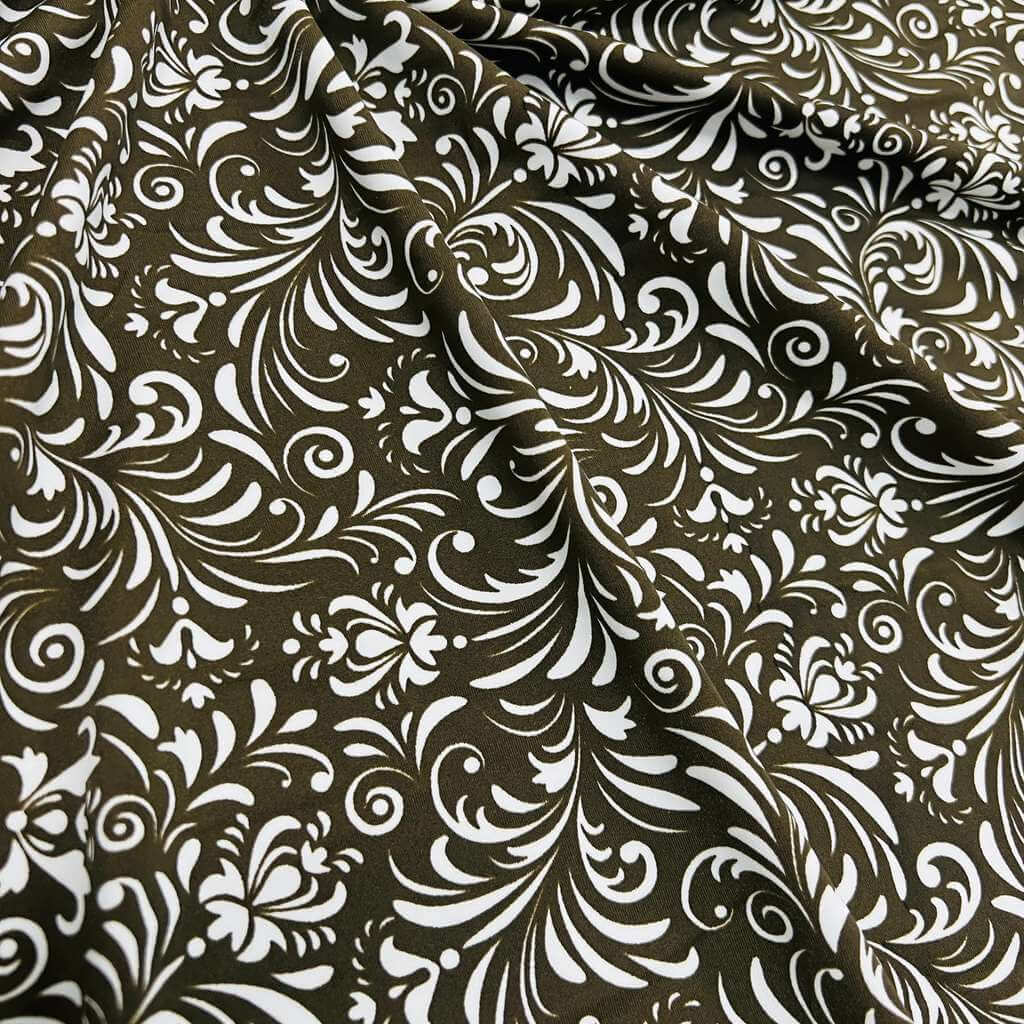 Vintage White Flowers print Nylon Lycra Spandex Fabric 4 Way Strech by Yard for swimwear dancewear dress gymwear (159-1)(23)