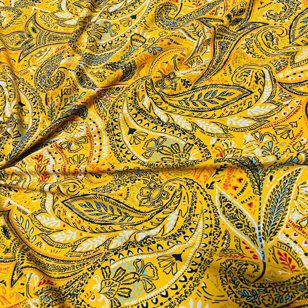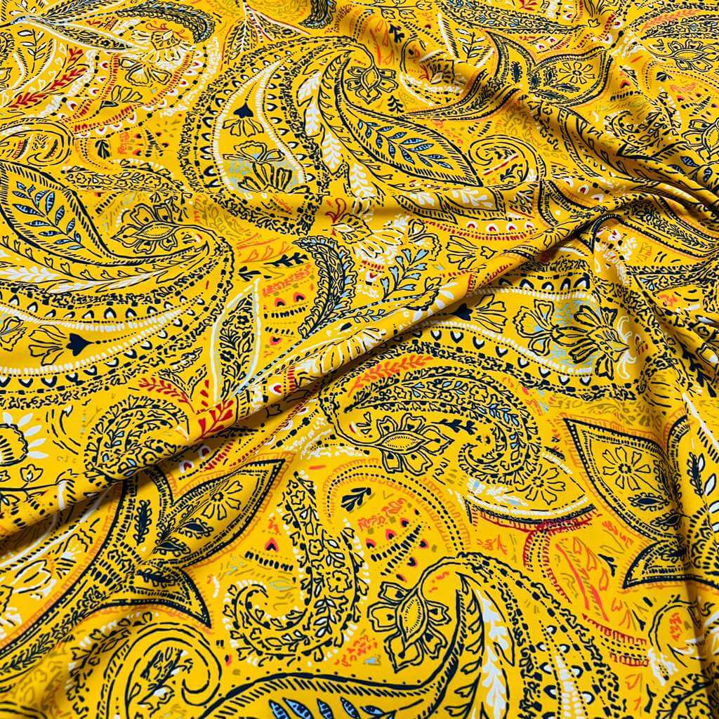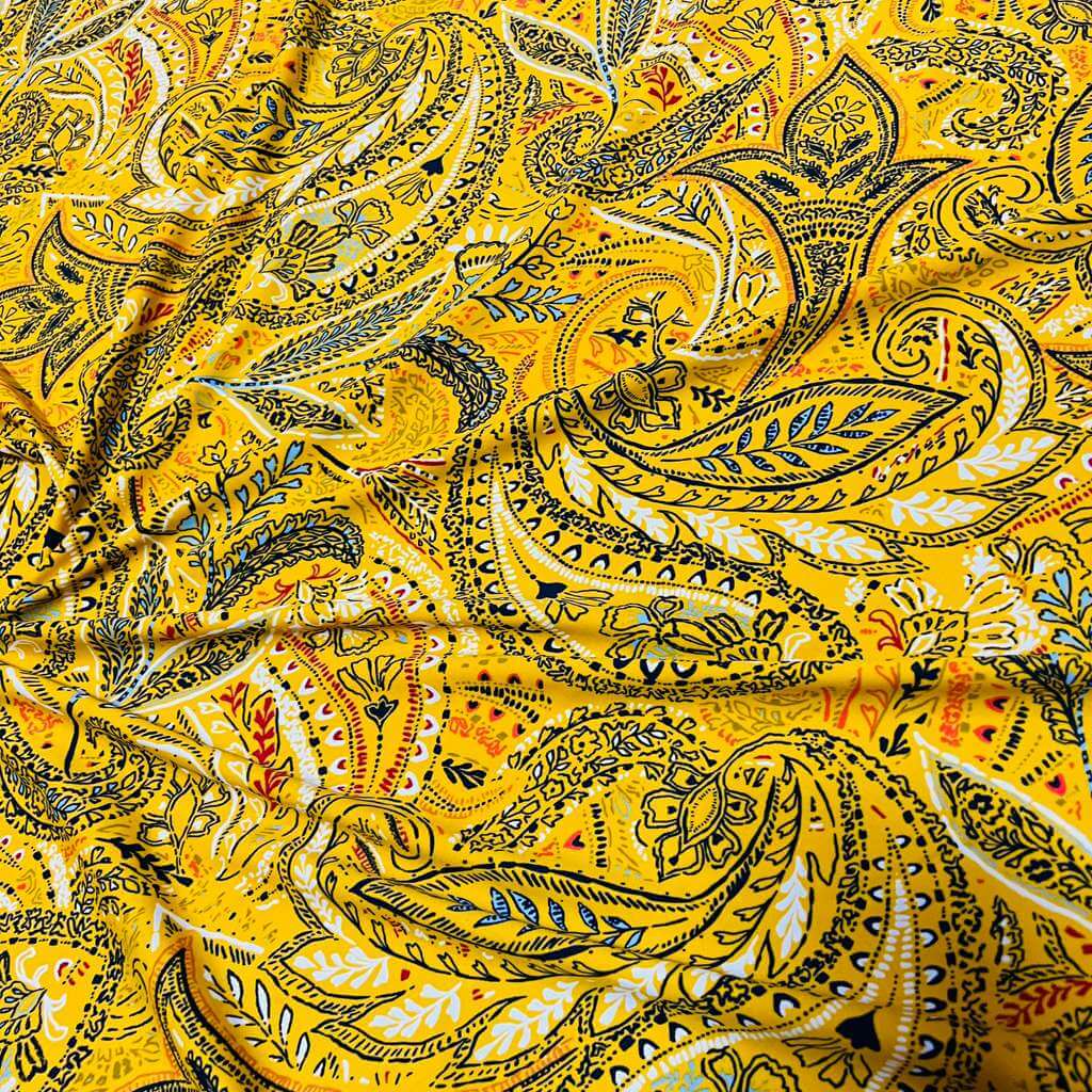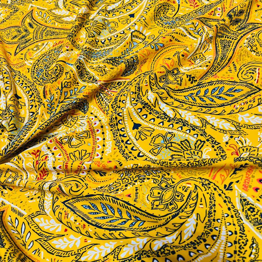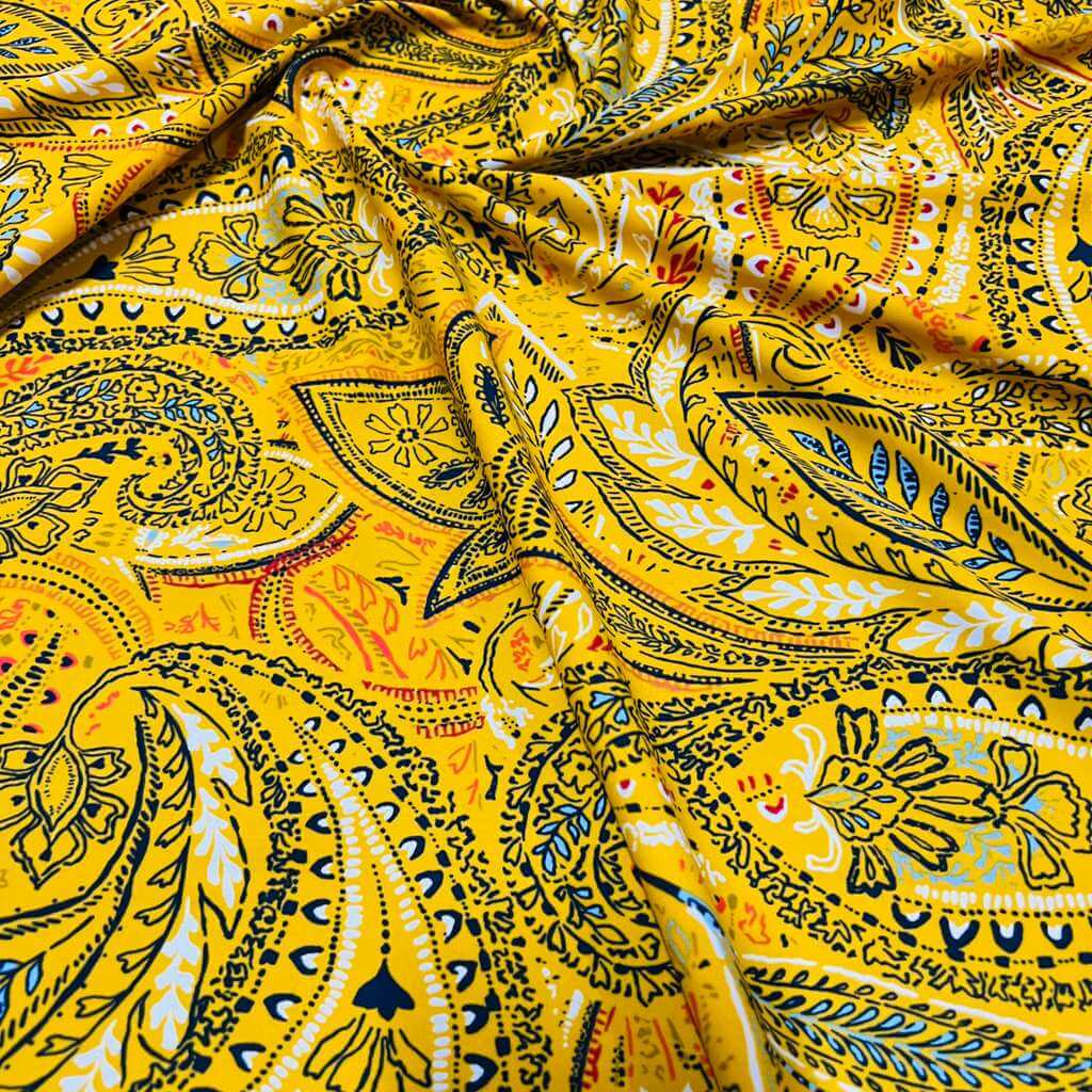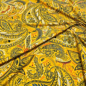 Vintage Yellow Paisley Print Nylon Spandex Fabric 4 Way Stretch for swimwear dancewear gymwear sportwear dress skirt (159-3)(22)