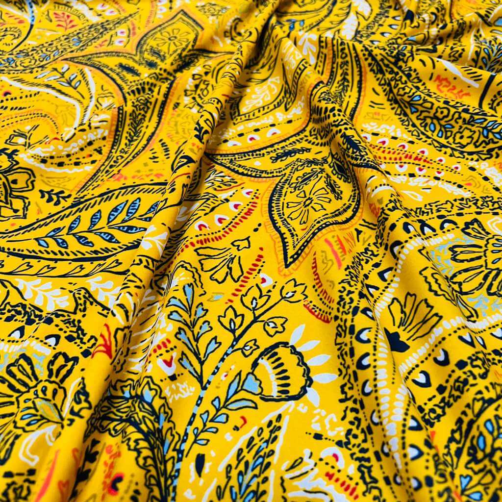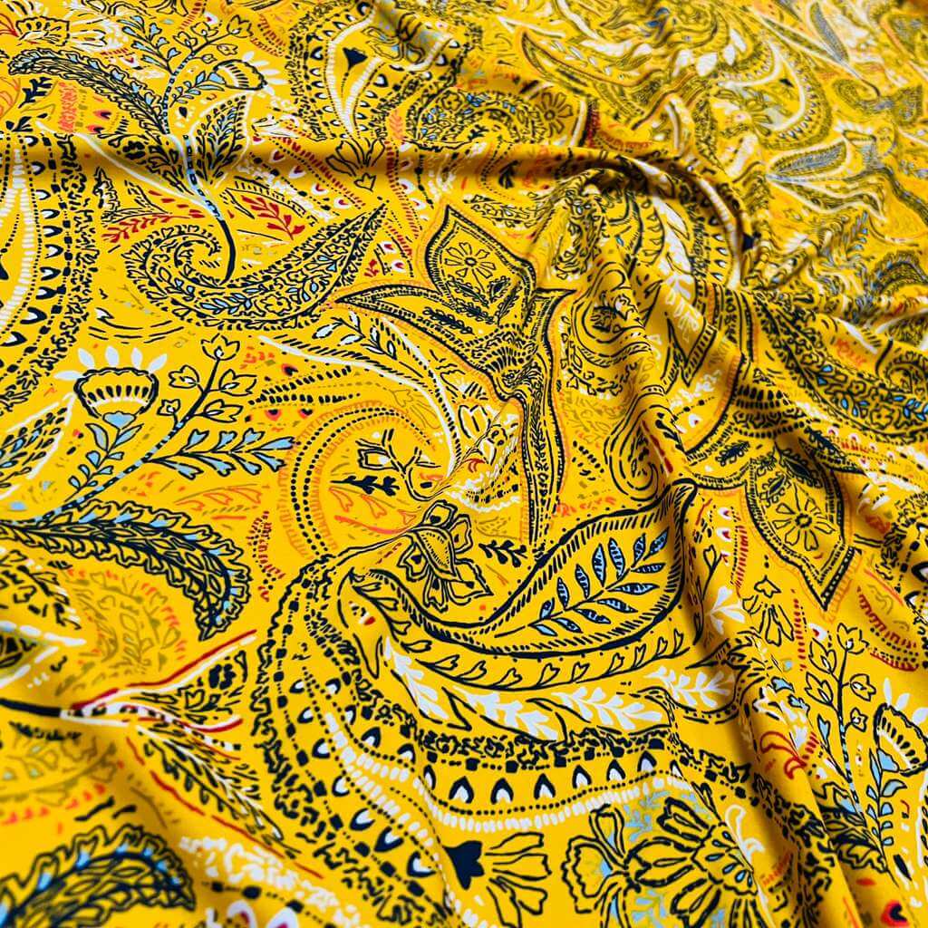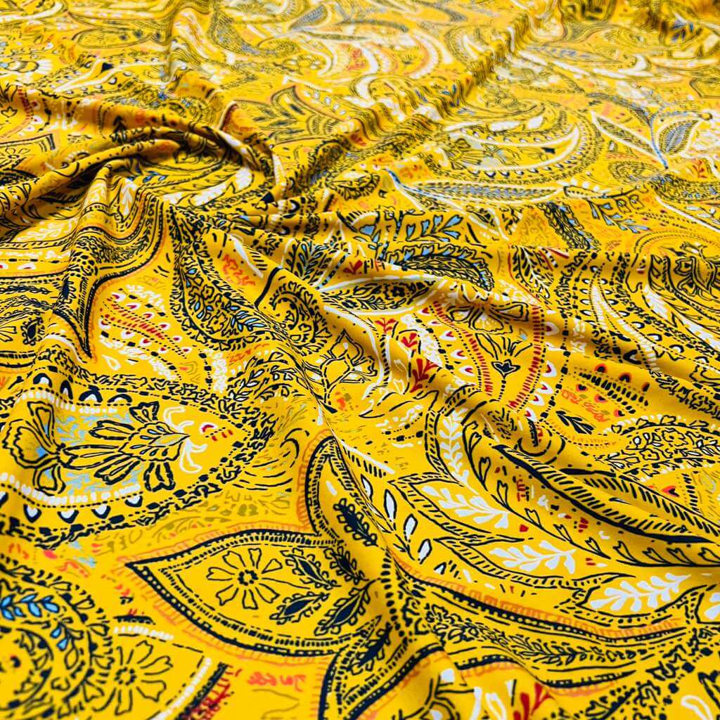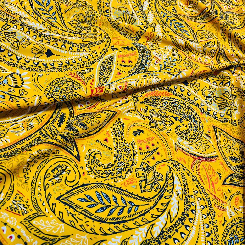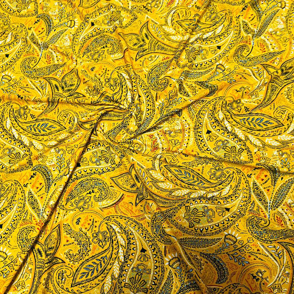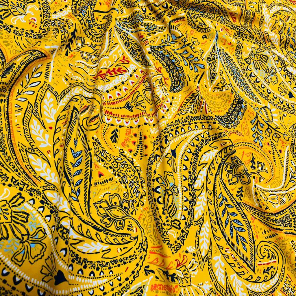 Vintage Yellow Paisley Print Nylon Spandex Fabric 4 Way Stretch for swimwear dancewear gymwear sportwear dress skirt (159-3)(22)