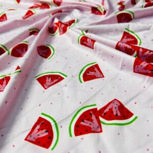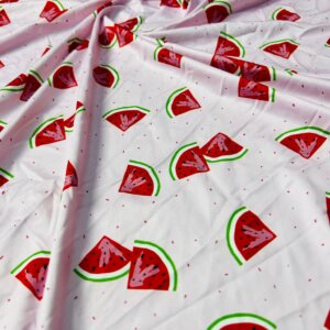 Watermelons and Dots Pink background Print Nylon Lycra Spandex Fabric 4 Way Stretch By Yard for swimwear dancewear gymwear sportwear dress (204-6)