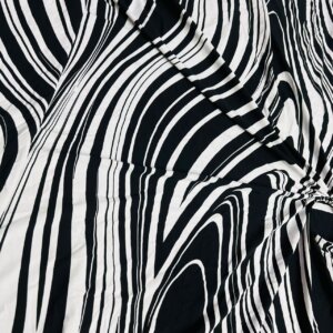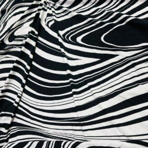 White and Black Wavy Stripes Print Nylon Lycra Spandex Fabric 4 Way Stretch By Yard for swimwear dancewear gymwear sportwear dress (204-7)
