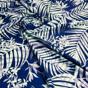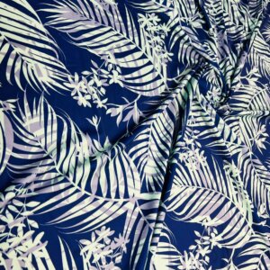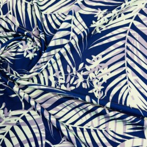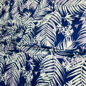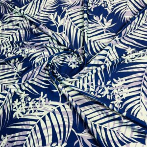 White and Purple Leaves Blue background Print Nylon Lycra Spandex Fabric 4 Way Stretch By Yard for swimwear dancewear gymwear sportwear dress (239-5)