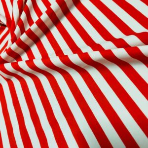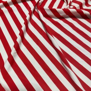 White and Red Thin Stripes Print Nylon Spandex Fabric 4 Way Stretch for swimwear (279-11)