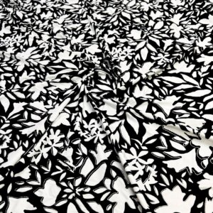 White Flowers Black background Print Nylon Lycra Spandex Fabric 4 Way Stretch By Yard for swimwear dancewear gymwear sportwear dress(279-4)