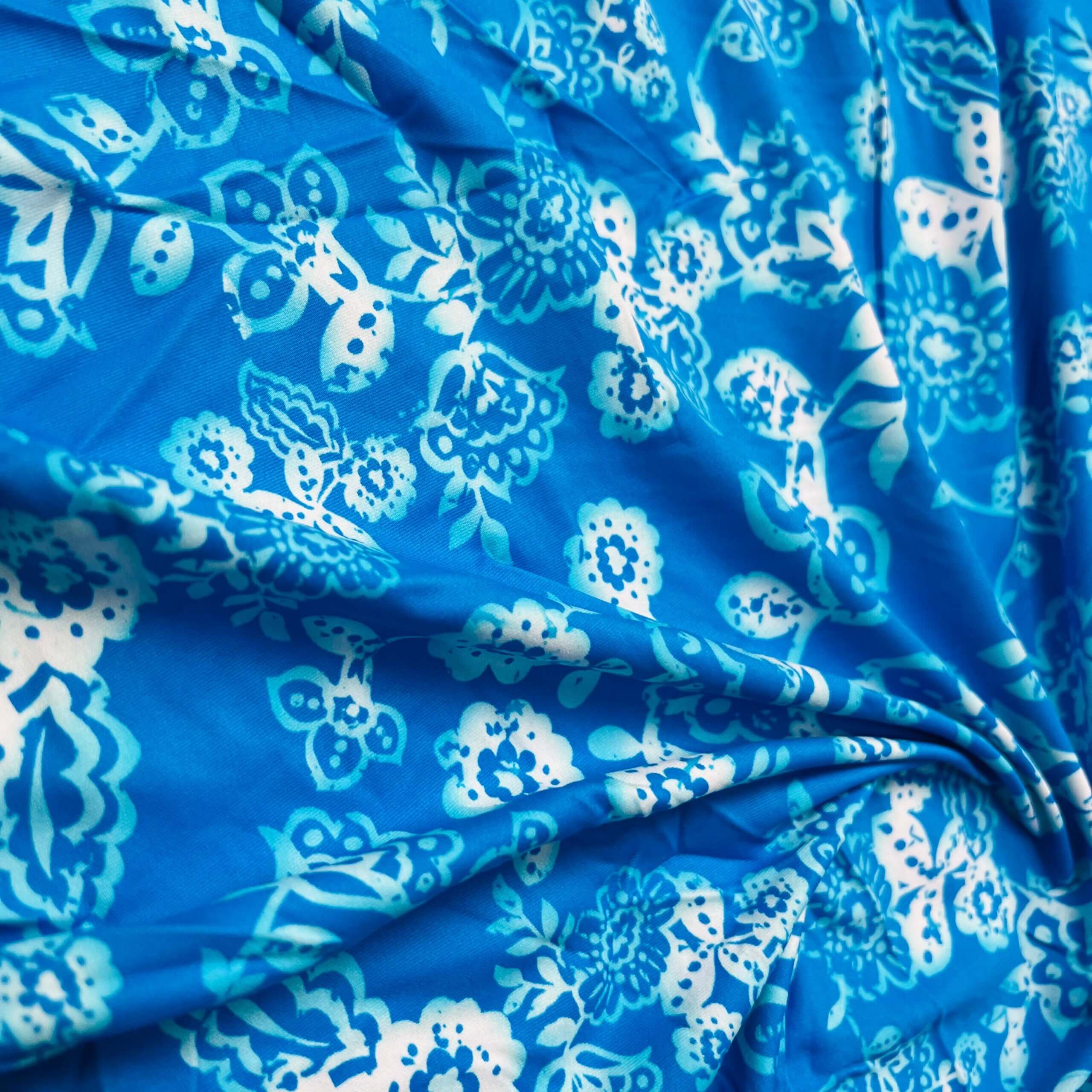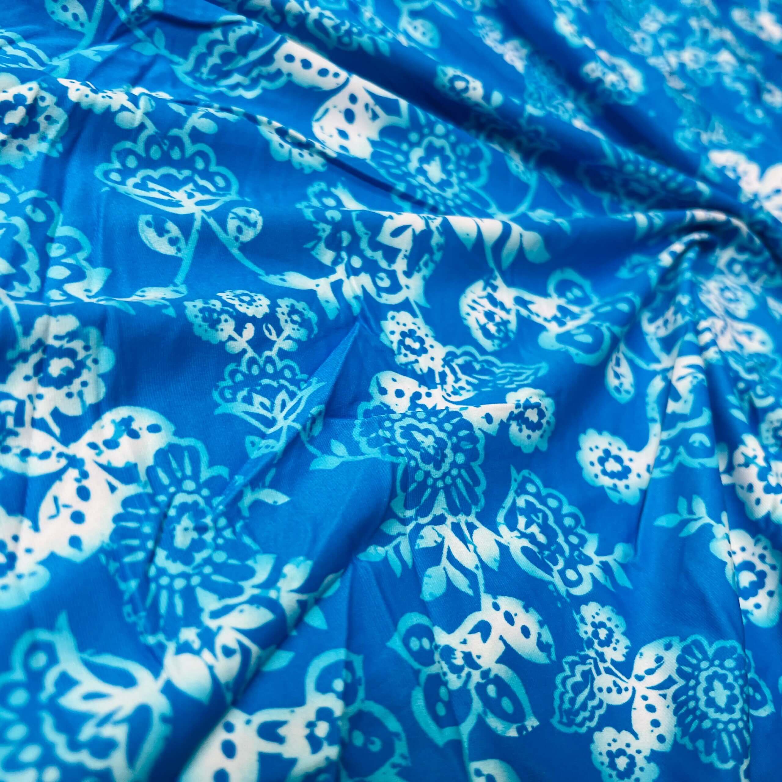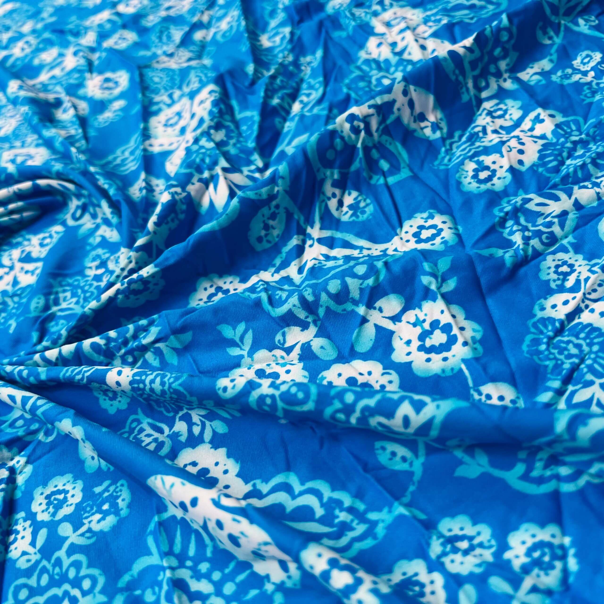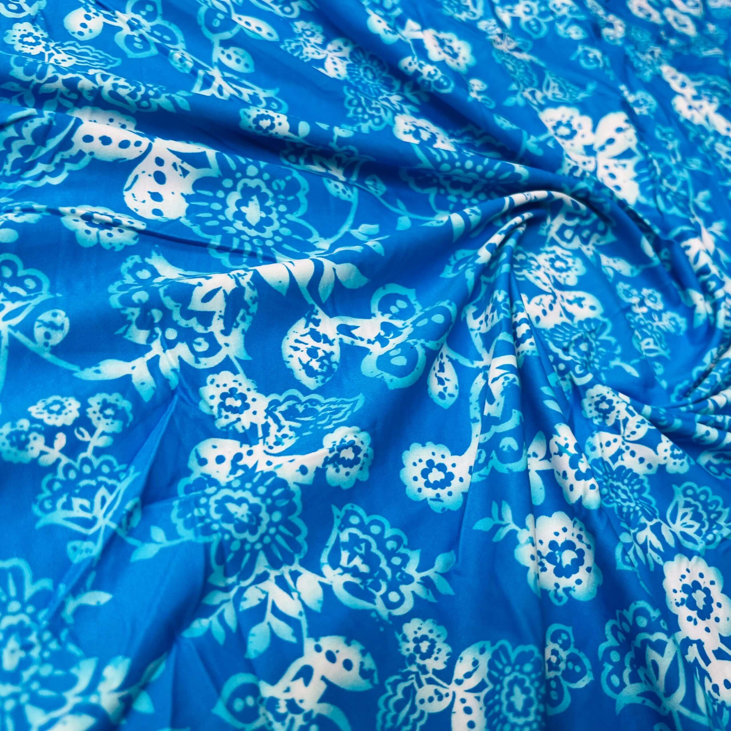 White Flowers Blue Background Print Nylon Lycra Spandex Fabric 4 Way Stretch By Yard for swimwear dancewear gymwear sportwear dress skirt (204-6)