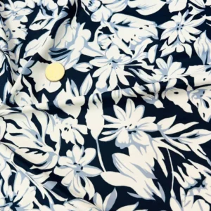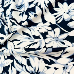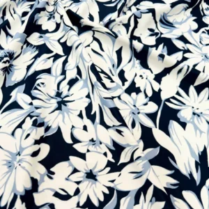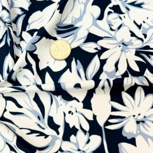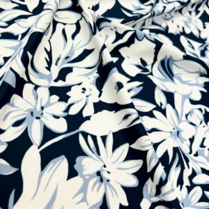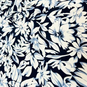White Flowers Dark Blue background Print Nylon Spandex Fabric 4 Way Stretch By Yard for swimwear dancewear gymwear sportwear dress skirt (239-5)