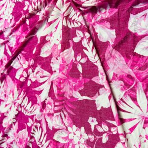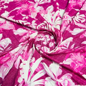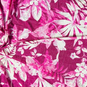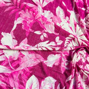 White Flowers Pink Background Print Nylon Lycra Spandex Fabric 4 Way Stretch By Yard for swimwear dancewear gymwear sportwear dress (204-7)