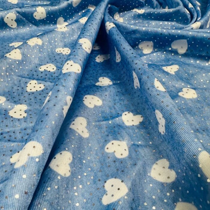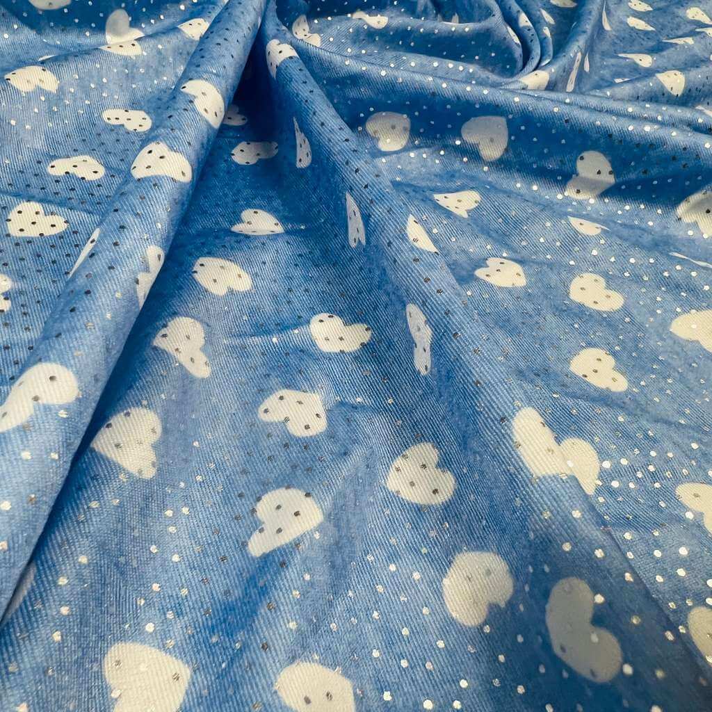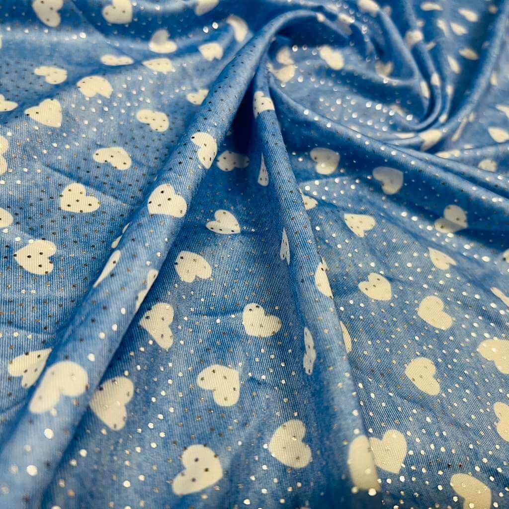 White Hearts with Blue Background print Nylon Nylon Lycra Spandex Fabric 4 Way Stretch By Yard for swimwear dancewear gymwear sportwear dress