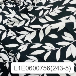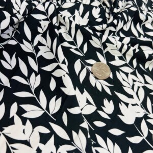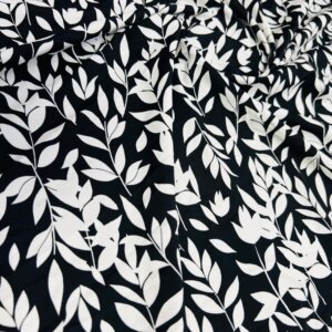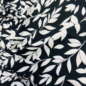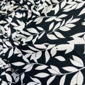 White Leaves Black Background Print Nylon Lycra Spandex Fabric 4 Way Stretch By Yard for swimwear dancewear gymwear sportwear dress (205-5)