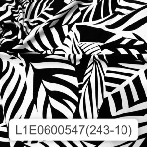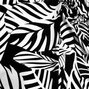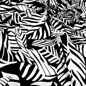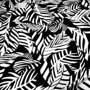 White Leaves Black background Print Nylon Lycra Spandex fabric four way Stretch by Yard for swimwear dancewear dress gymwear (243-10)