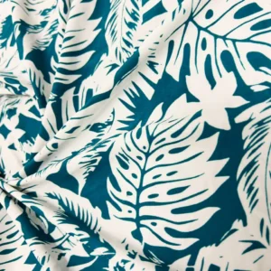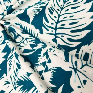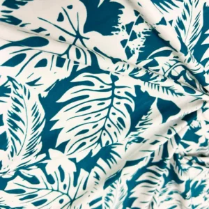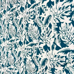 White Leaves Blue background Print Nylon Spandex Fabric 4 Way Stretch By Yard for swimwear dancewear gymwear sportwear dress skirt (239-7)