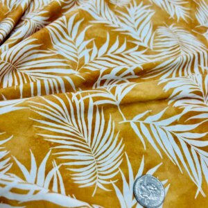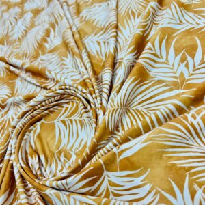 White Leaves Brown Background Print Nylon Lycra Spandex Fabric 4 Way Stretch By Yard for swimwear dancewear gymwear sportwear dress