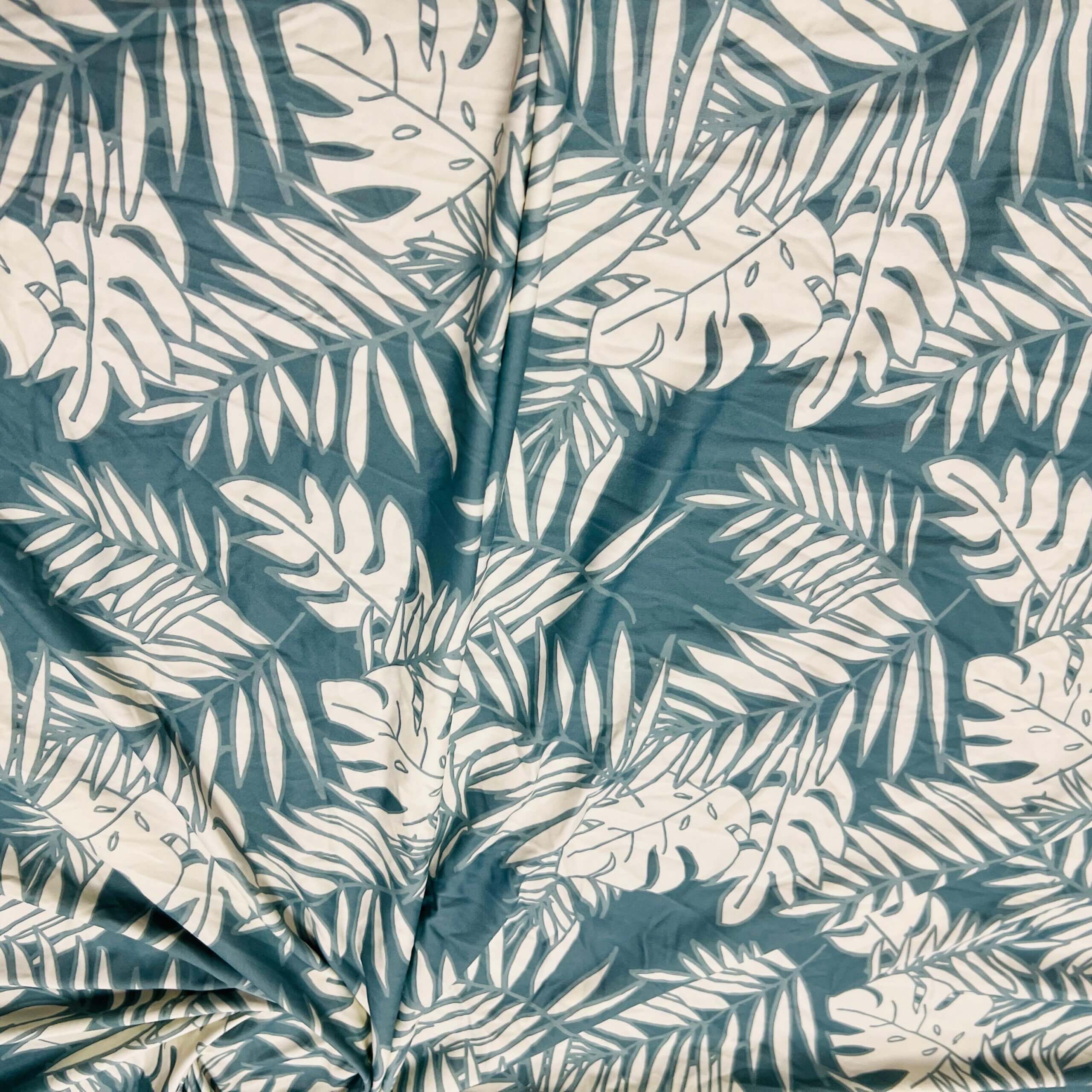 White Leaves with Gray Background print Nylon Lycra Spandex Fabric 4 Way Strech by Yard for swimwear dancewear dress gymwear