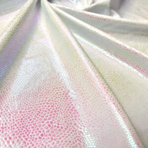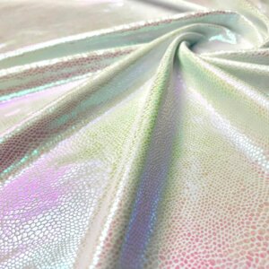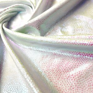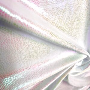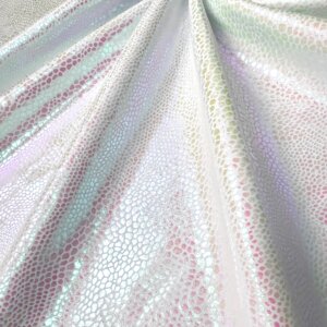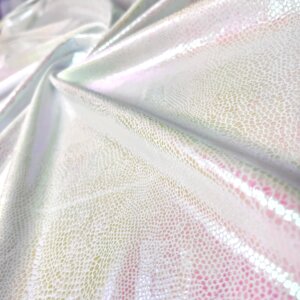 You are viewing White Litmus Pearl Hologram Metallic Stretch Foil Hologram Fabric Nylon Lycra Spandex Fabric 4 Way Stretch By The Yard for swimwear dancewear sportwear