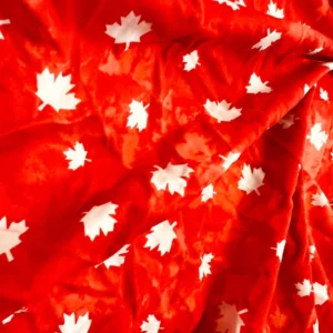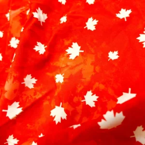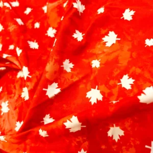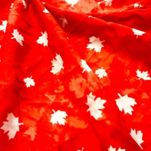 White Maple Leaves Red background Print Nylon Spandex Fabric 4 Way Stretch By Yard for swimwear dancewear gymwear sportwear dress skirt (239-14)