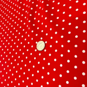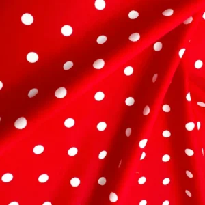 White Polka Dots Red background Print Nylon Spandex Fabric 4 Way Stretch By Yard for swimwear dancewear gymwear sportwear dress skirt (239-12)