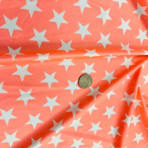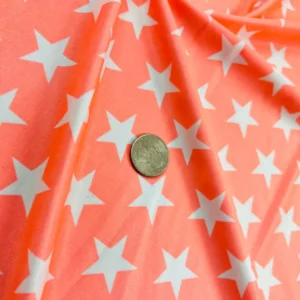 White Stars Coral Background Print Nylon Spandex Fabric 4 Way Stretch By Yard for swimwear dancewear gymwear sportwear dress skirt (239-9)
