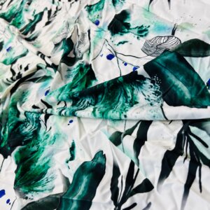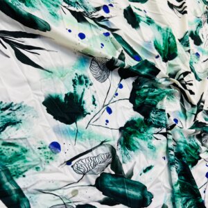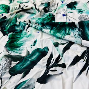 Winter Green Leaves White Background Print Nylon Lycra Spandex Fabric 4 Way Stretch By Yard for swimwear dancewear gymwear sportwear dress skirt (239-11)