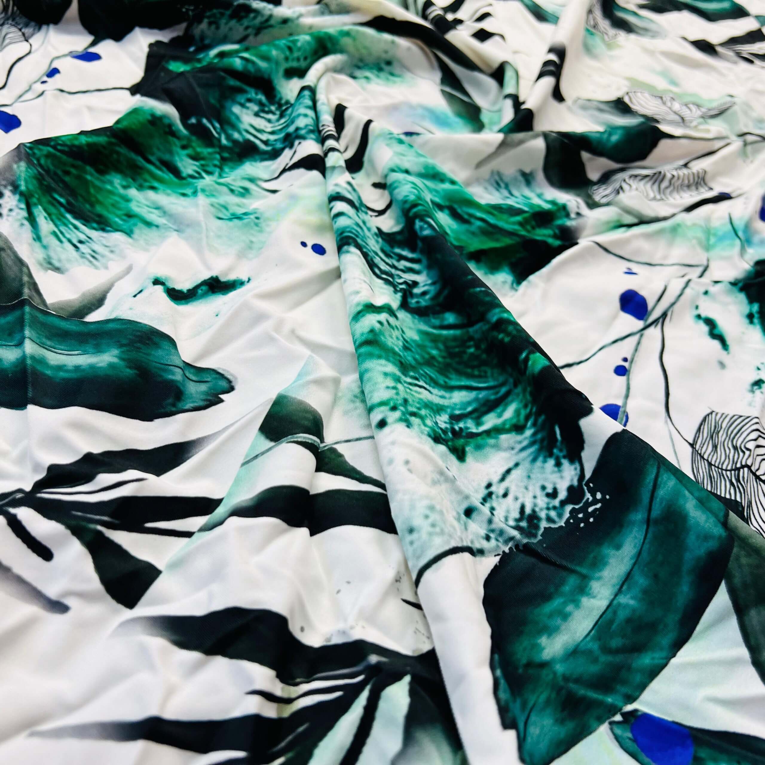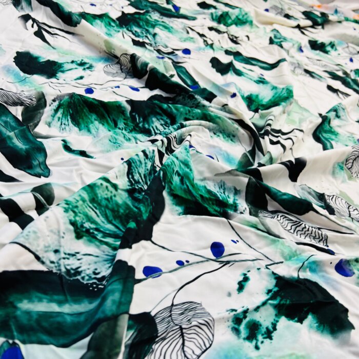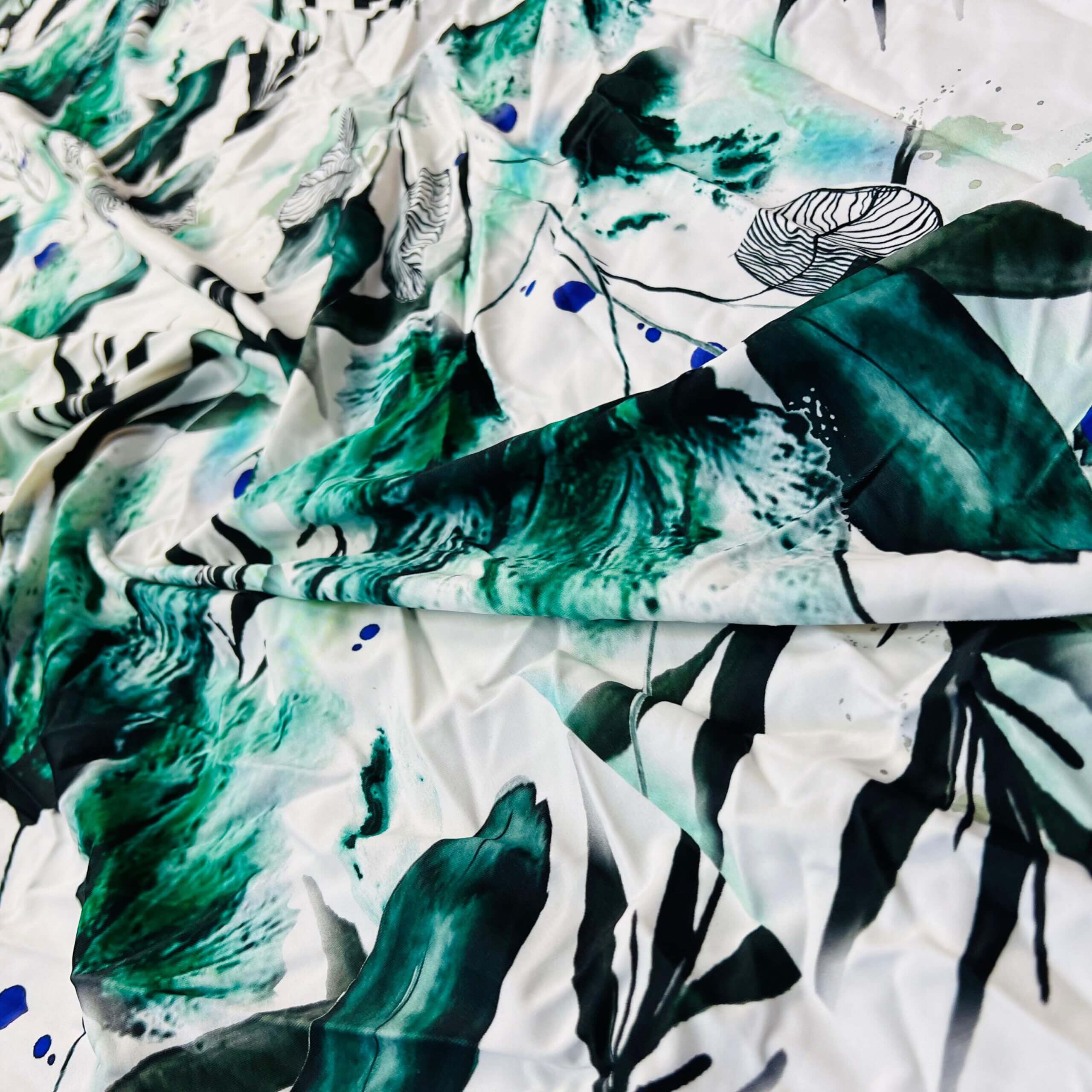 Winter Green Leaves White Background Print Nylon Lycra Spandex Fabric 4 Way Stretch By Yard for swimwear dancewear gymwear sportwear dress skirt (239-11)