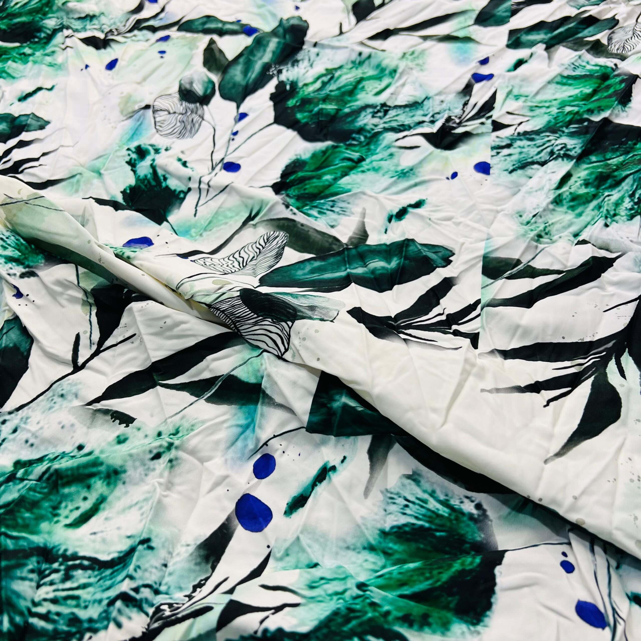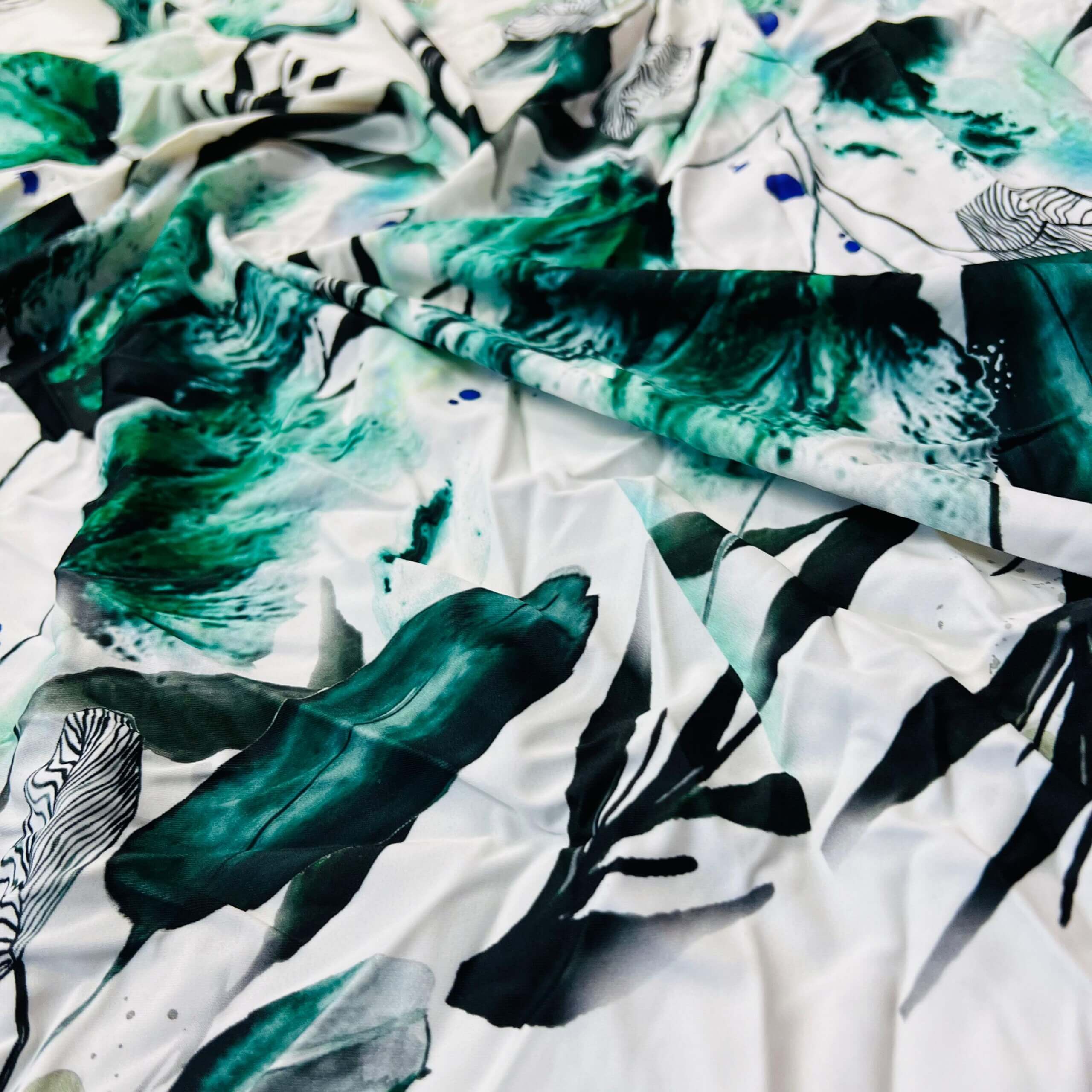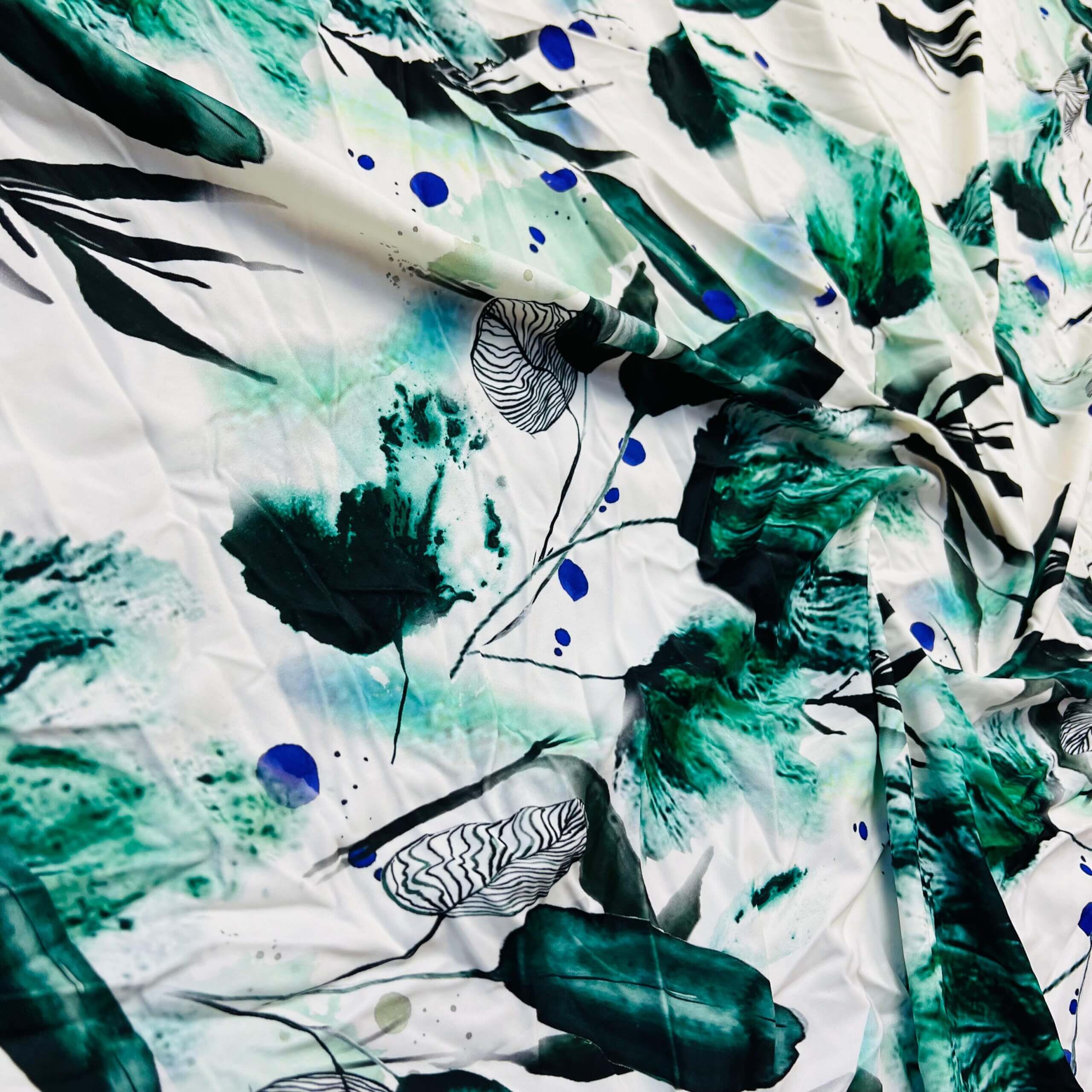 Winter Green Leaves White Background Print Nylon Lycra Spandex Fabric 4 Way Stretch By Yard for swimwear dancewear gymwear sportwear dress skirt (239-11)