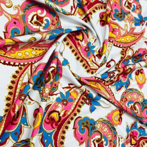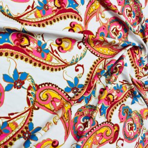 Yellow and Pink Paisley White background Print Nylon Lycra Spandex Fabric 4 Way Stretch By Yard for swimwear dancewear gymwear sportwear dress (239-8)