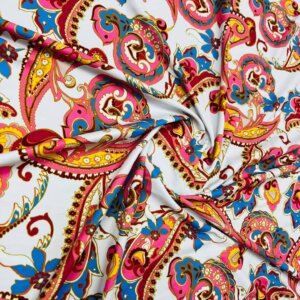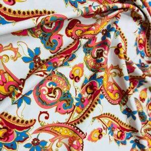 Yellow and Pink Paisley White background Print Nylon Lycra Spandex Fabric 4 Way Stretch By Yard for swimwear dancewear gymwear sportwear dress (239-5)