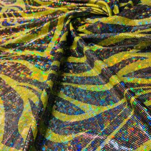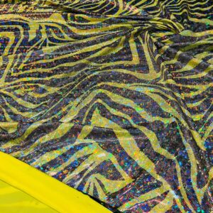 Zebra Animal Print Neon Yellow Nylon Lycra Spandex Fabric 4 Way Stretch By Yard for swimwear dancewear sportwear dress (243-1)