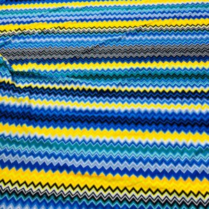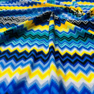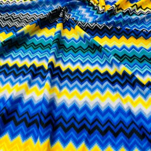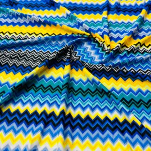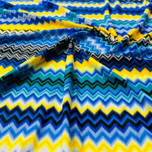 You are viewing Zic Zac Blue and Yellow Print Nylon Spandex Fabric 4 Way Stretch By Yard for swimwear dancewear gymwear sportwear