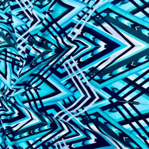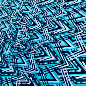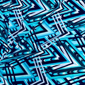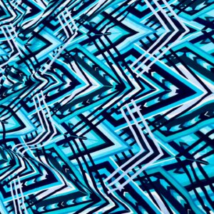 You are viewing Zic Zac Blue Print Nylon Lycra Spandex Fabric 4 Way Stretch By Yard for swimwear dancewear gymwear sportwear dress