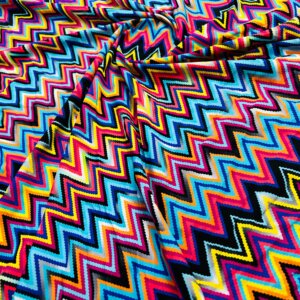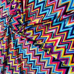 You are viewing Zic Zac Multicolor Print Nylon Lycra Spandex Fabric 4 Way Stretch By Yard for swimwear dancewear gymwear sportwear dress