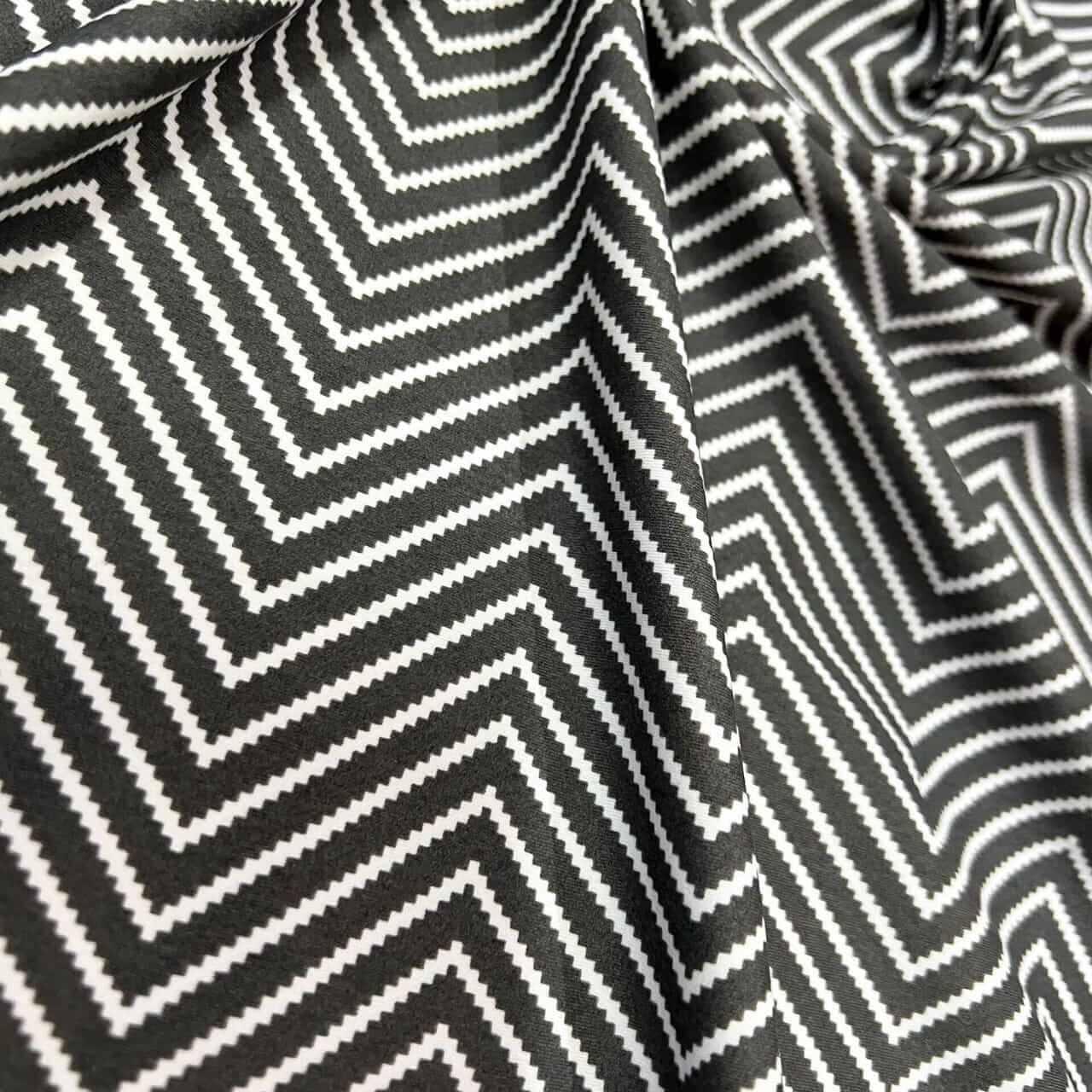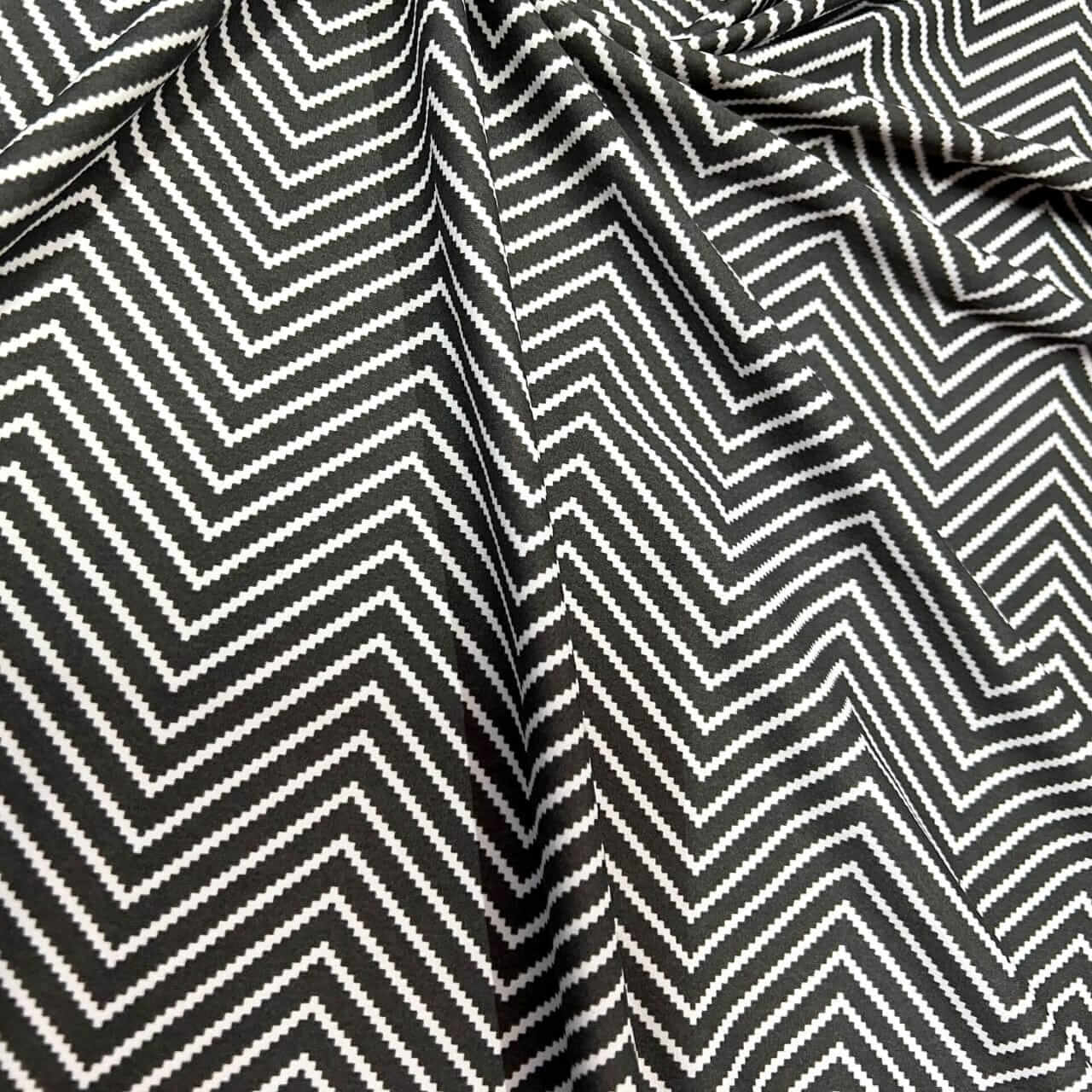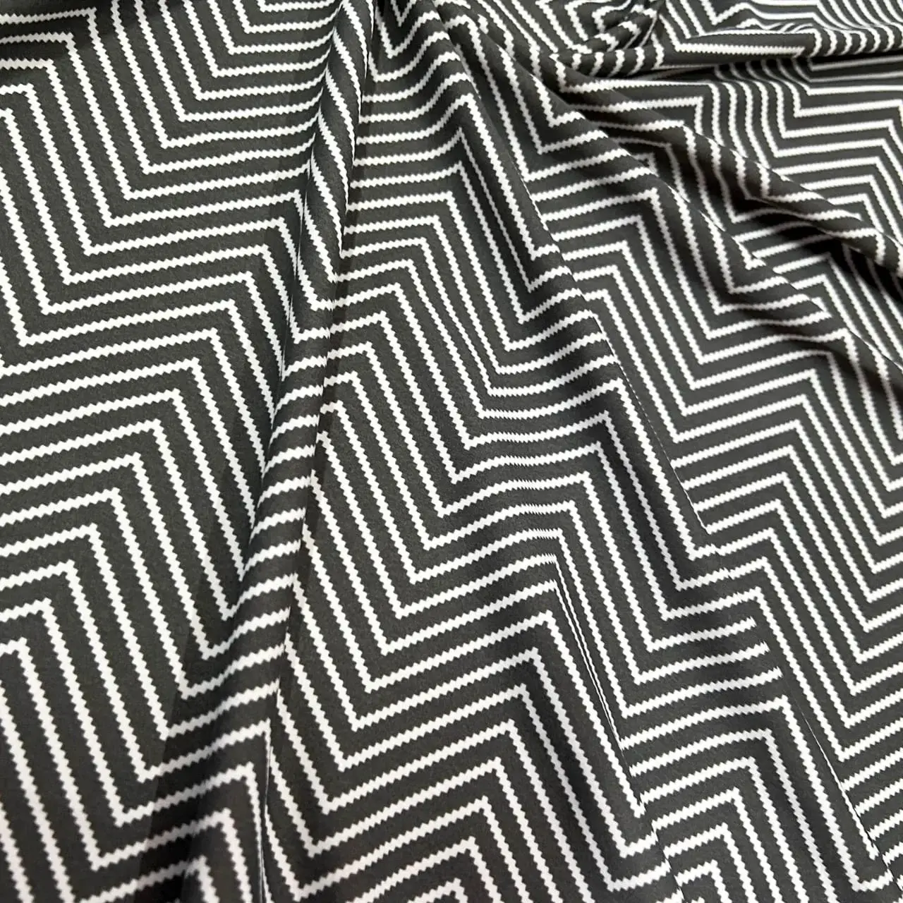 Zig Zag Black and White Print Nylon Spandex Fabric 4 Way Stretch By Yard for swimwear dancewear gymwear sportwear dress skirt (239-7)